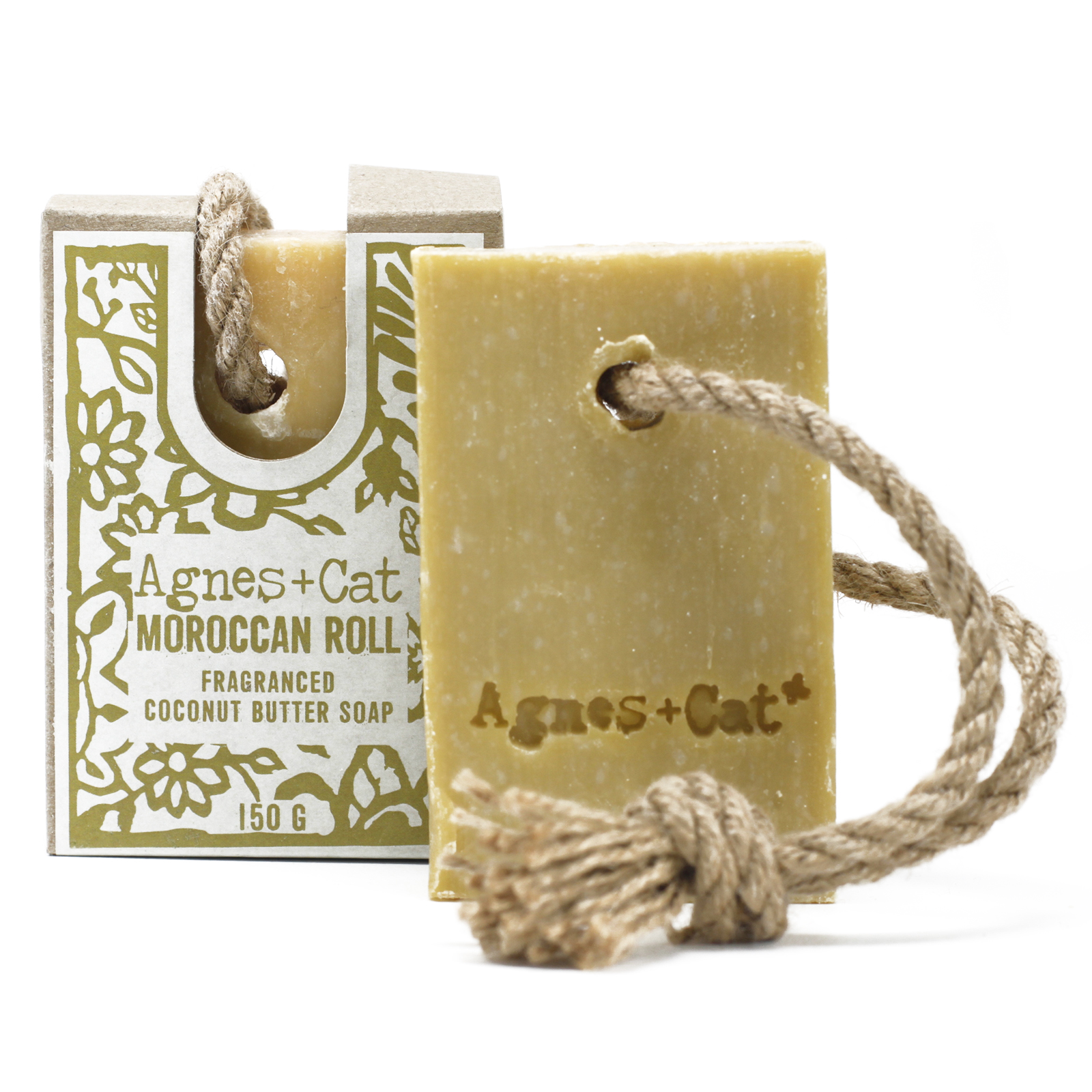 We've reinvented the idea and created a great solution for soap to hang in the shower or on the taps. Agnes and Cat Handmade Artisan Maroccan Roll Soap On a Rope has an amazing scent throw as well as being able to be displayed without any plastic wrappings.