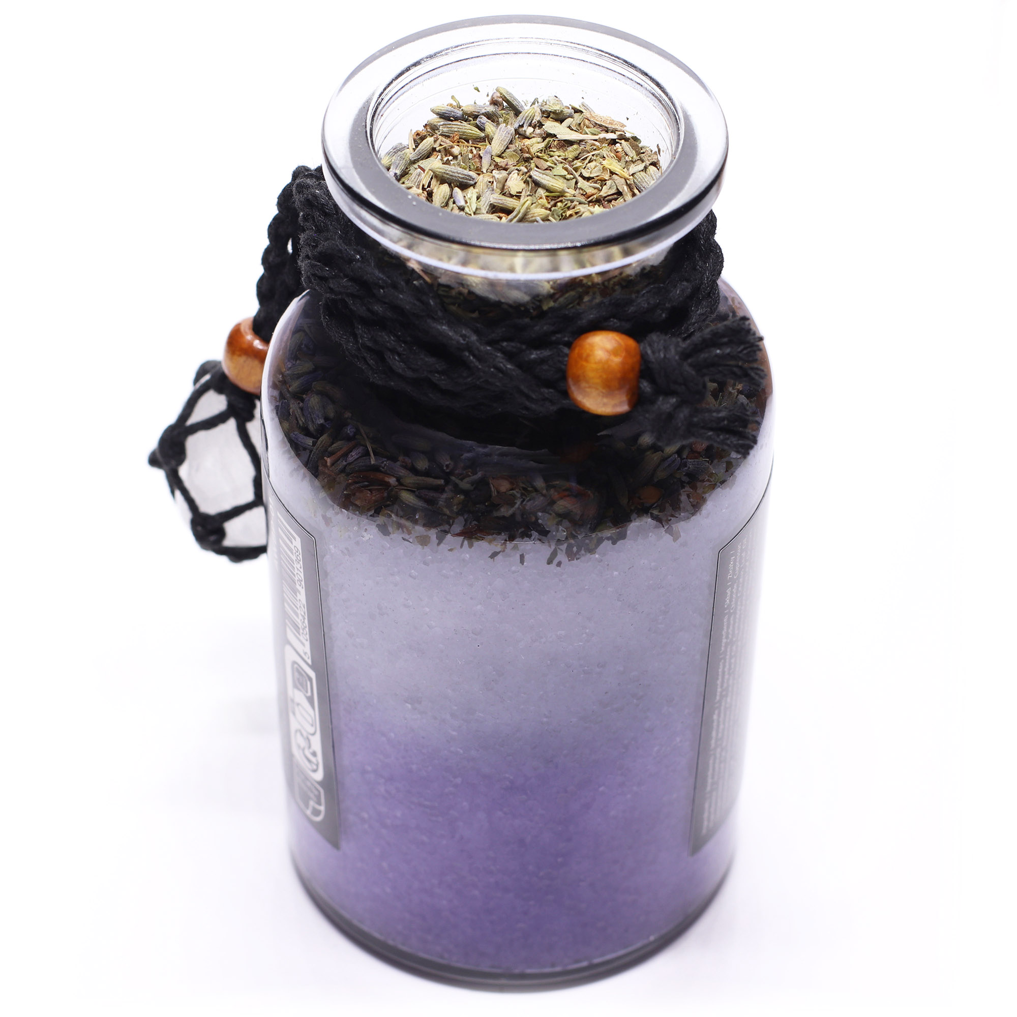 This luxurious blend combines Himalayan salt, lavender, and botanicals, infused with cypress, rosemary, and lemongrass essential oils — each selected for its cleansing, grounding, and revitalising properties. Suspended around the bottle neck is a Rock Quartz tumble stone necklace, symbolising clarity, energy purification, and spiritual harmony.