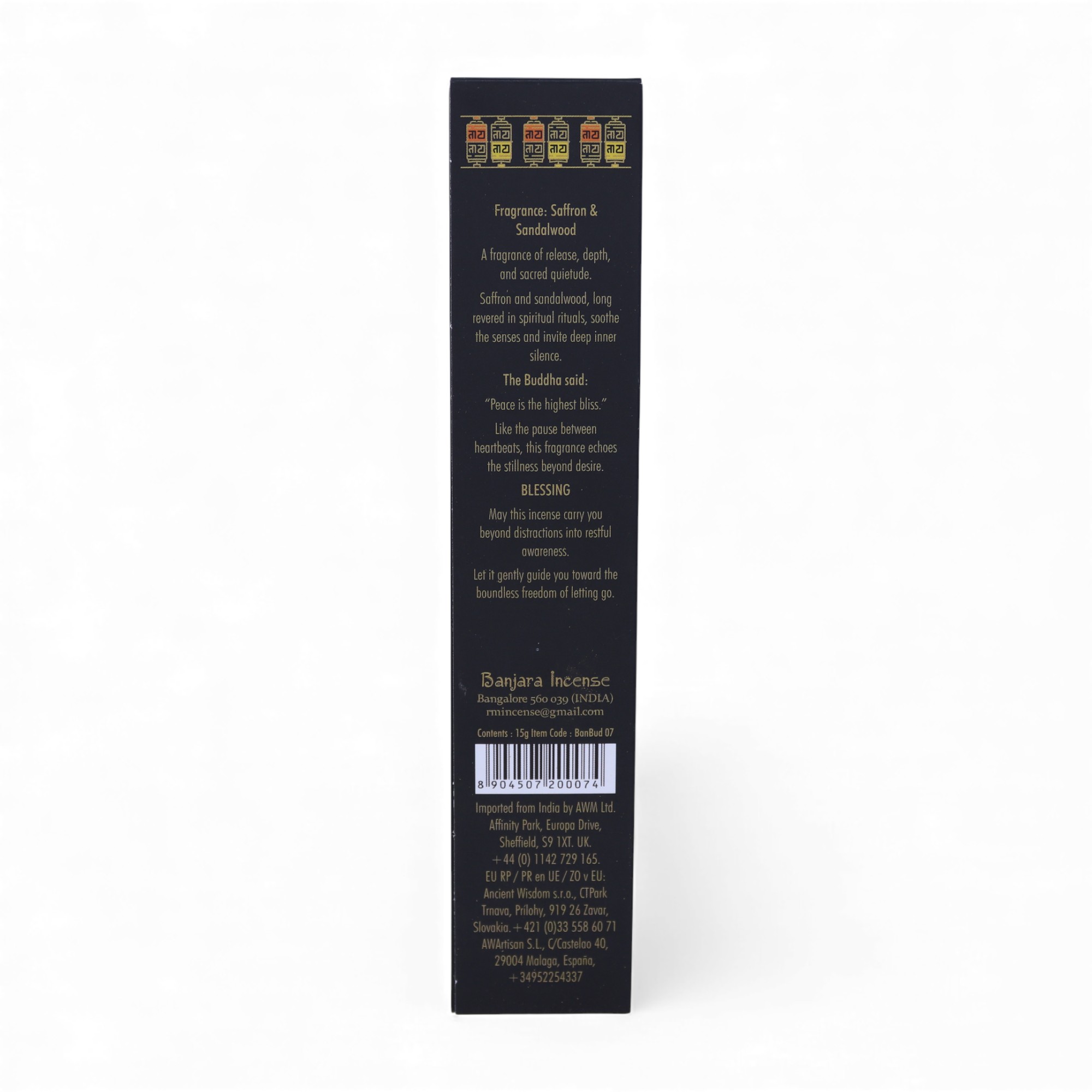 Saffron and sandalwood, long revered in spiritual rituals, soothe the senses and invite deep inner silence.