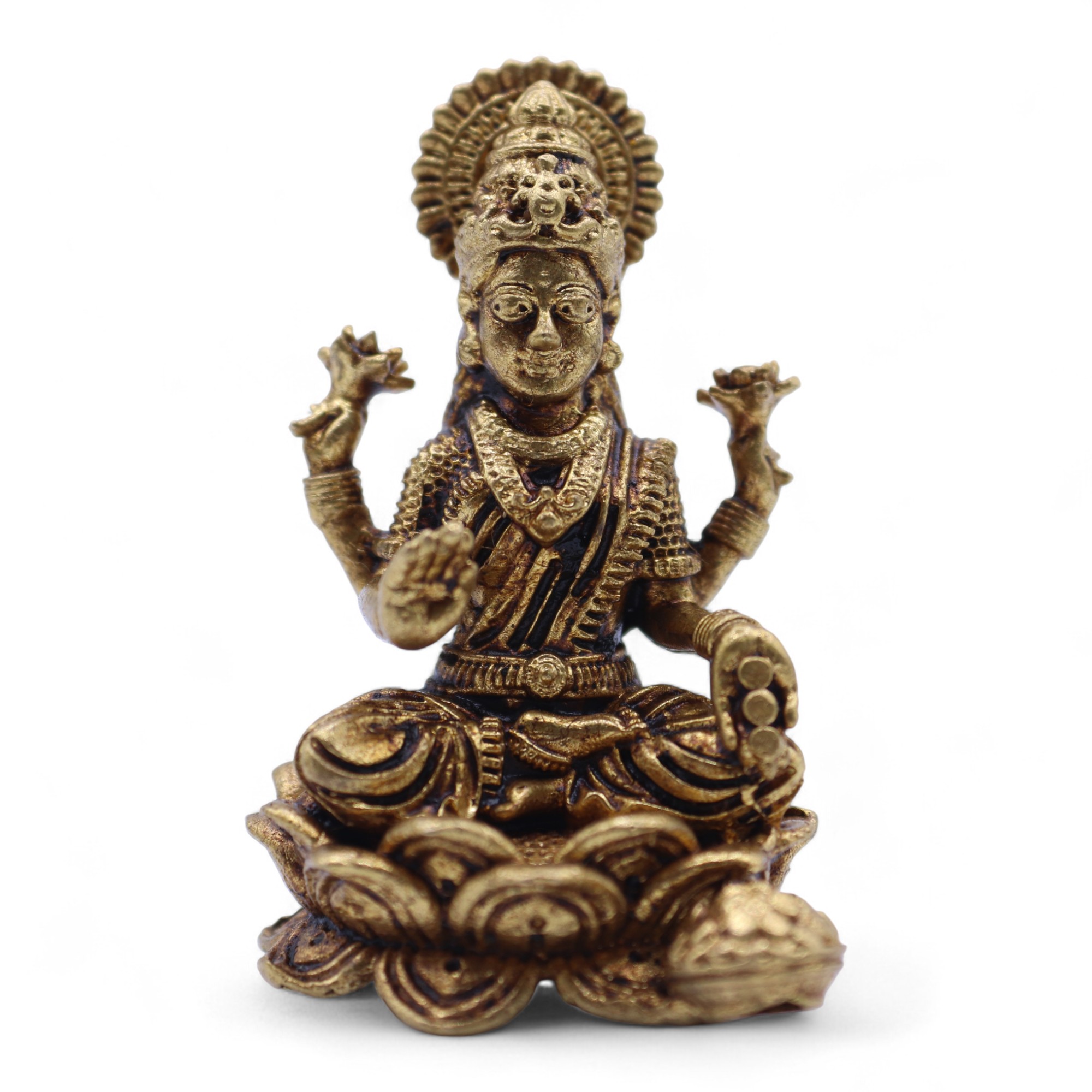 This Brass Miniature Laxmi figure carries a beautifully detailed representation of the goddess of prosperity, crafted in a slightly larger 37 mm size for added presence. Its intricate finish makes it ideal for home altars, meditation spaces, devotional collections, or meaningful gifting.