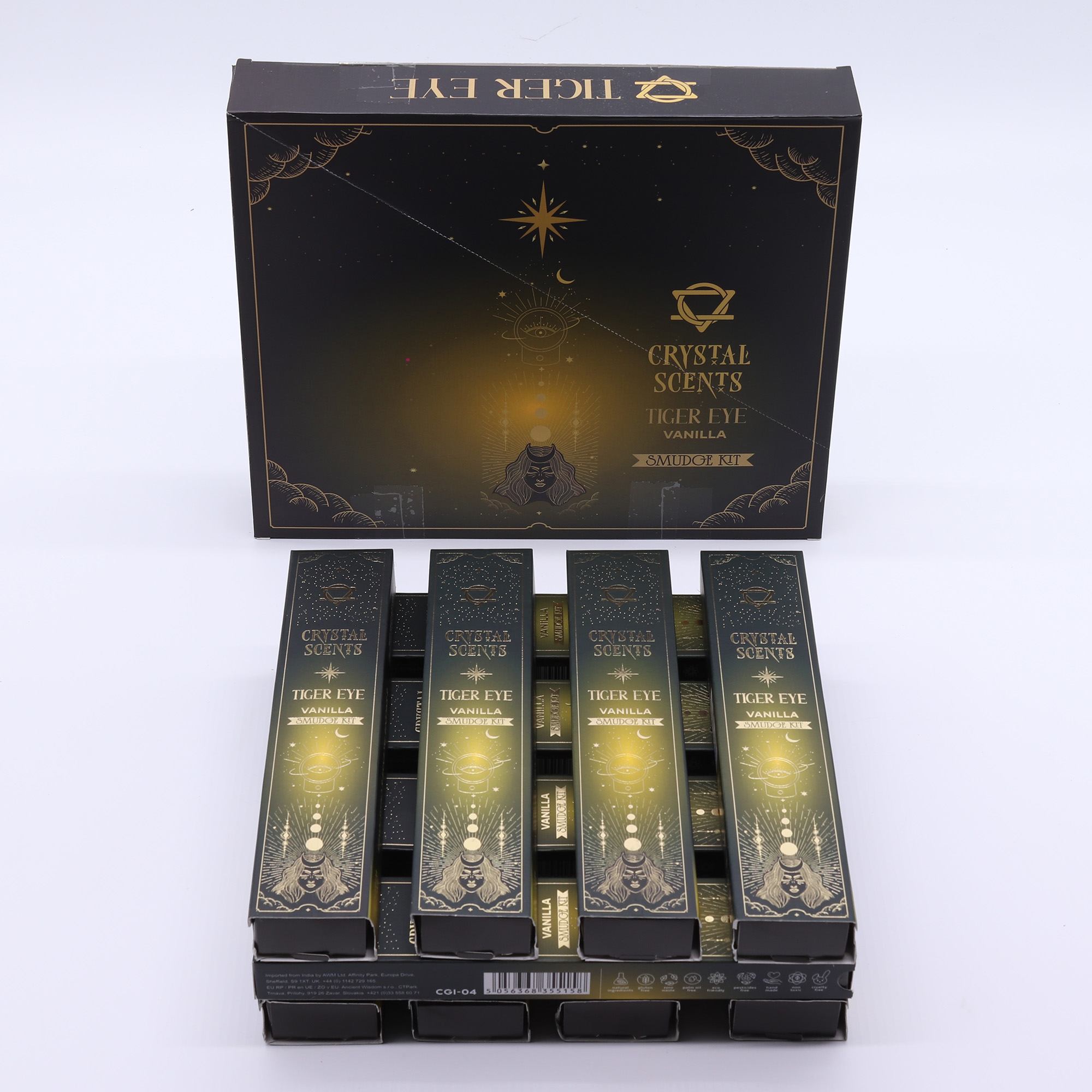 Each pack includes 10 handcrafted smudge sticks and a genuine Tiger Eye crystal, making it appealing for retailers offering wellbeing products, spiritual gifts or intention-setting tools. The pairing works well in both calm, everyday rituals and more structured manifestation practices.