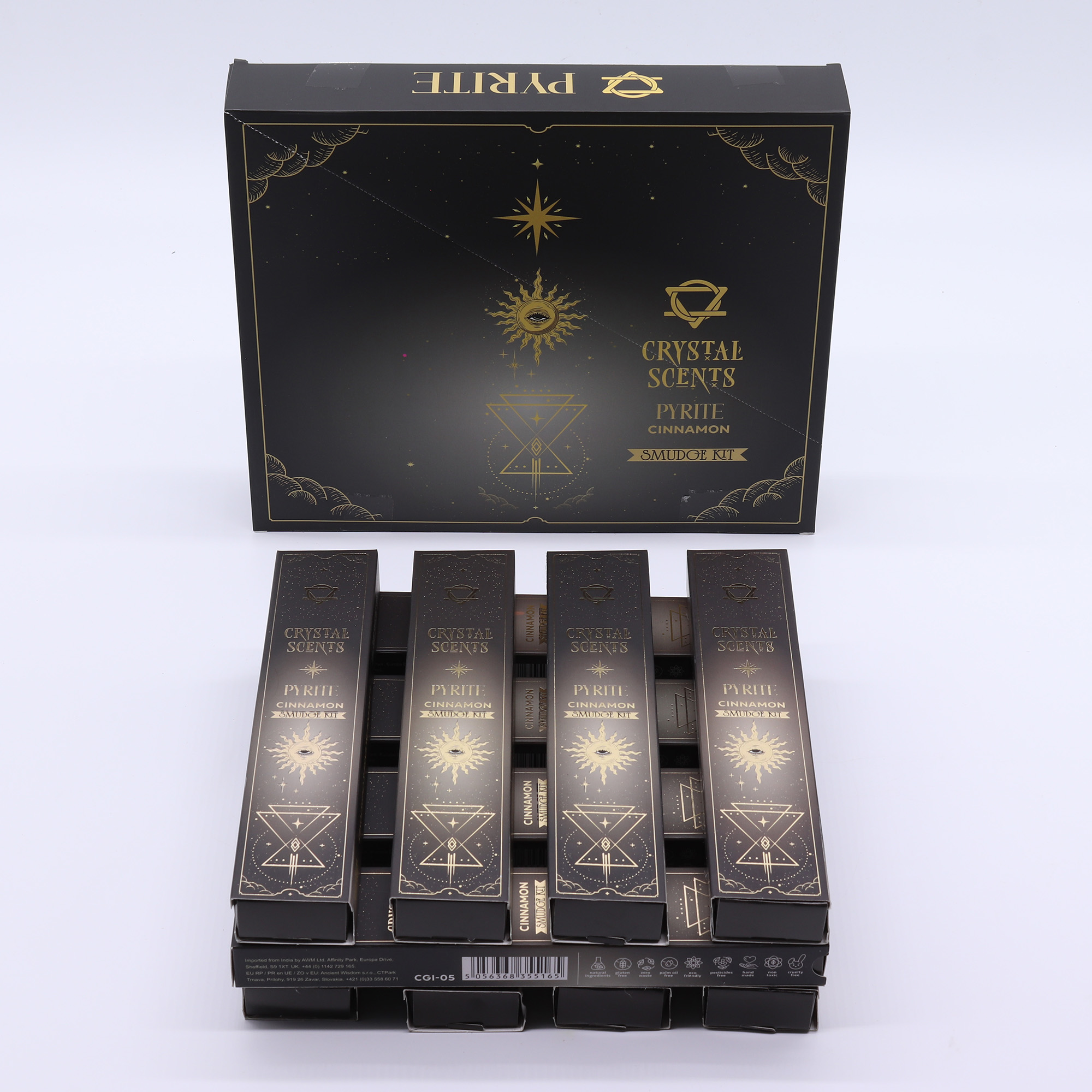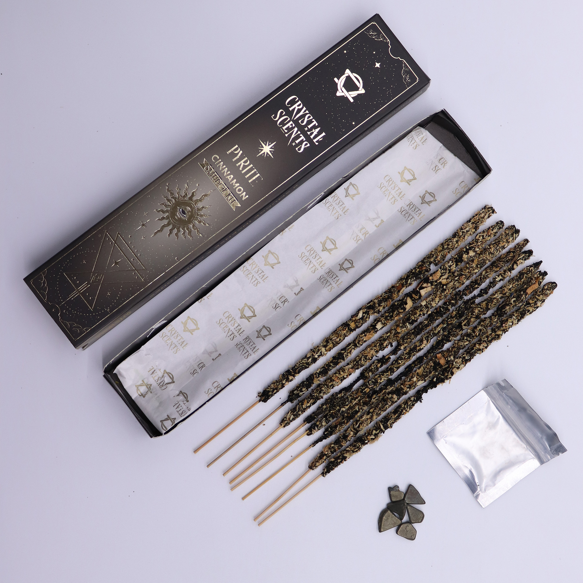Each pack contains 10 handcrafted smudge sticks and a genuine Pyrite crystals, making it a standout product for ritual kits, abundance-themed displays or shops with a focus on personal growth. The fragrance–crystal pairing encourages daily intention-setting and small motivational rituals.