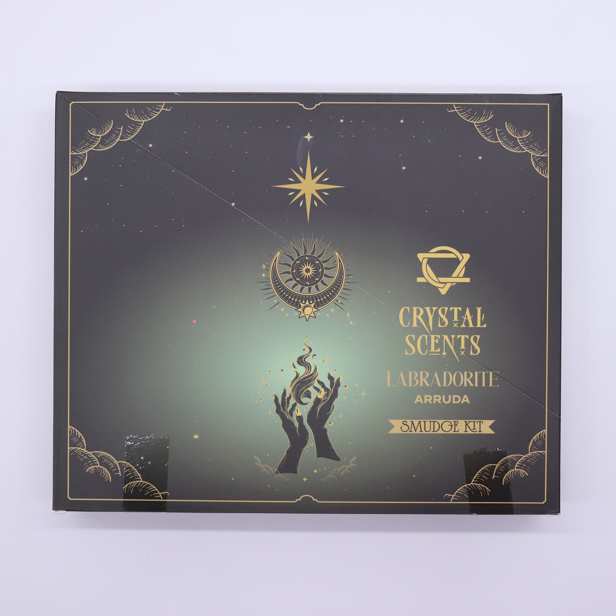 This blend brings together cleansing arruda fragrance with a Labradorite crystals, offering a ritual often associated with protection, intuition and energetic renewal. Labradorite is traditionally linked with shielding the aura, strengthening intuition and supporting personal transformation. When paired with the sharp, cleansing scent of arruda, the incense helps create a space that feels refreshed and energetically clear.