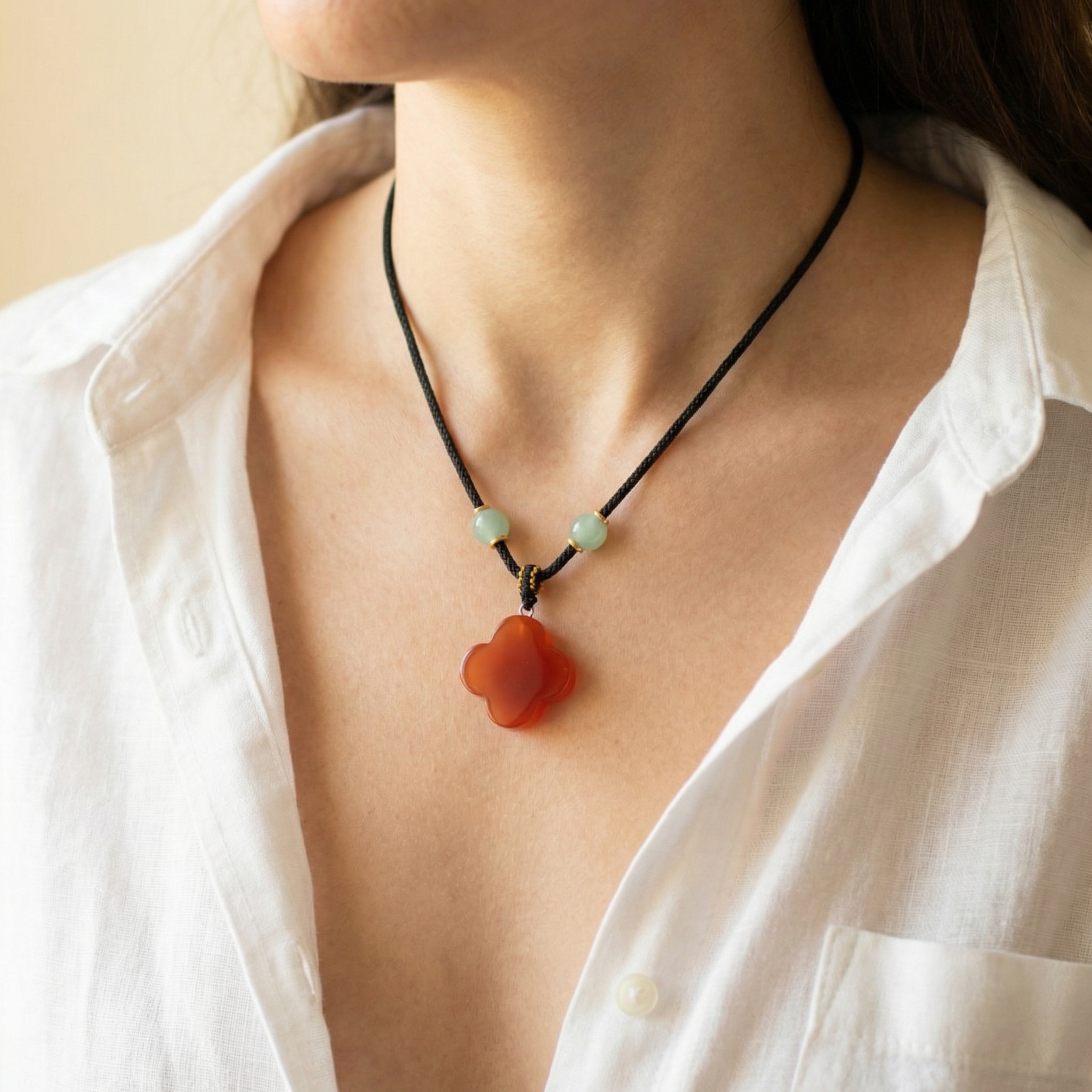 Gemstone pendants carefully carved into symbolic shapes that customers naturally resonate with. Think hearts representing affection, moons symbolising transformation, crosses for protection, and playful organic forms such as mushrooms that reflect a connection to nature.