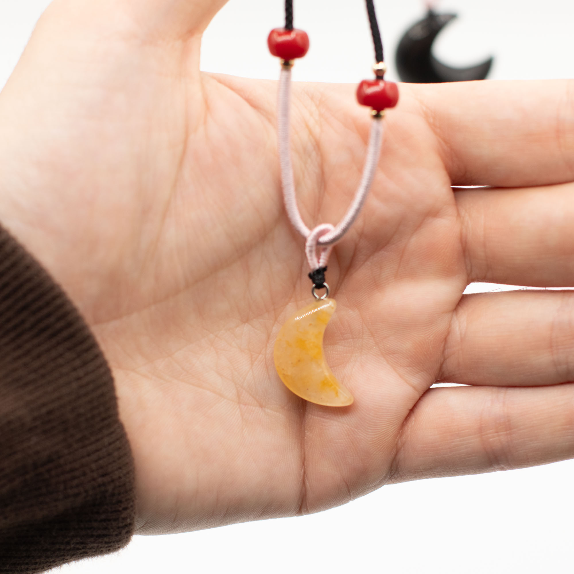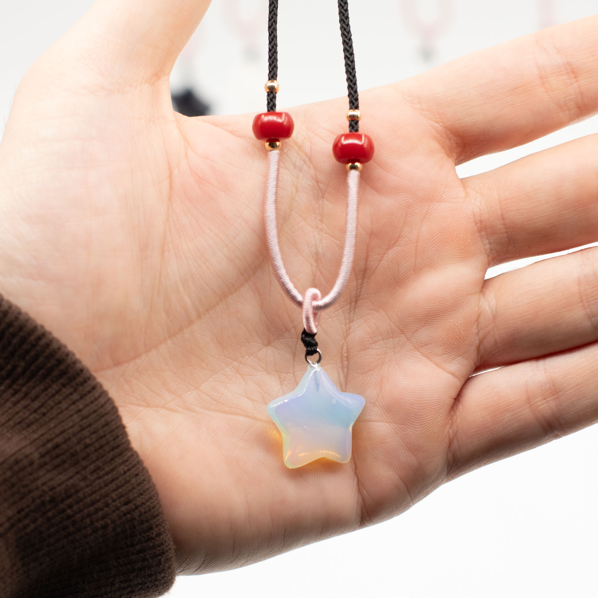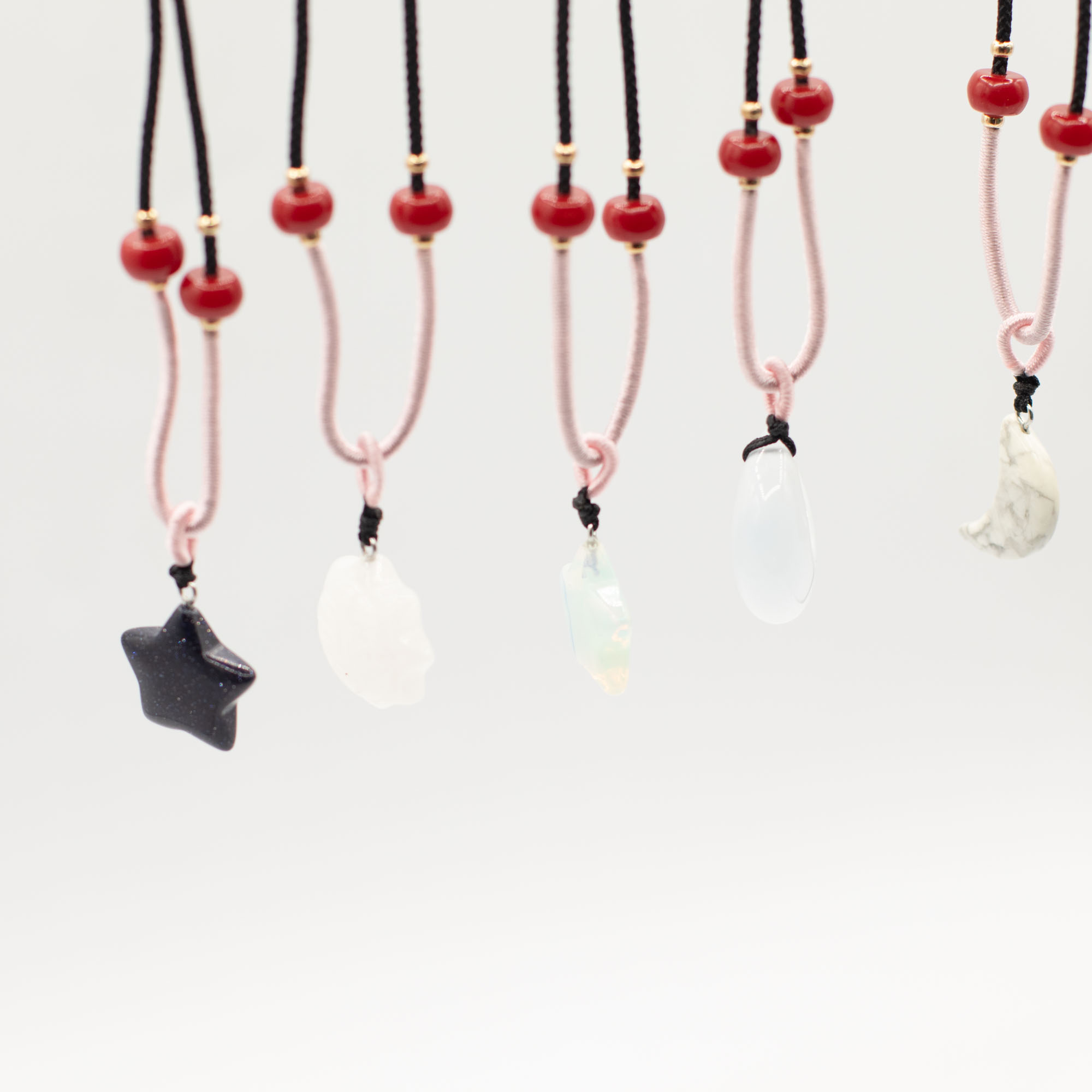 The assortment features popular cosmic motifs, including suns, moons and stars, each shaped from natural gemstones. Variations in tone and texture ensure every piece feels individual while maintaining a cohesive celestial theme.