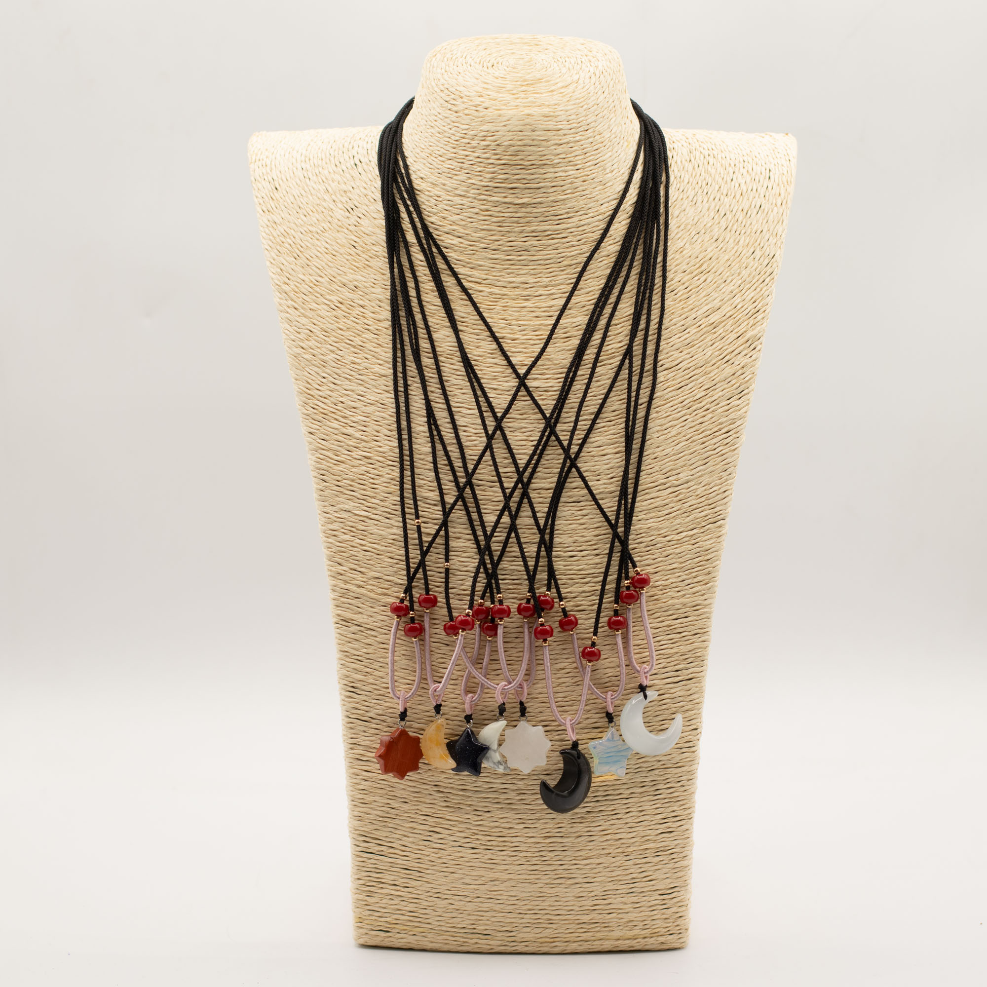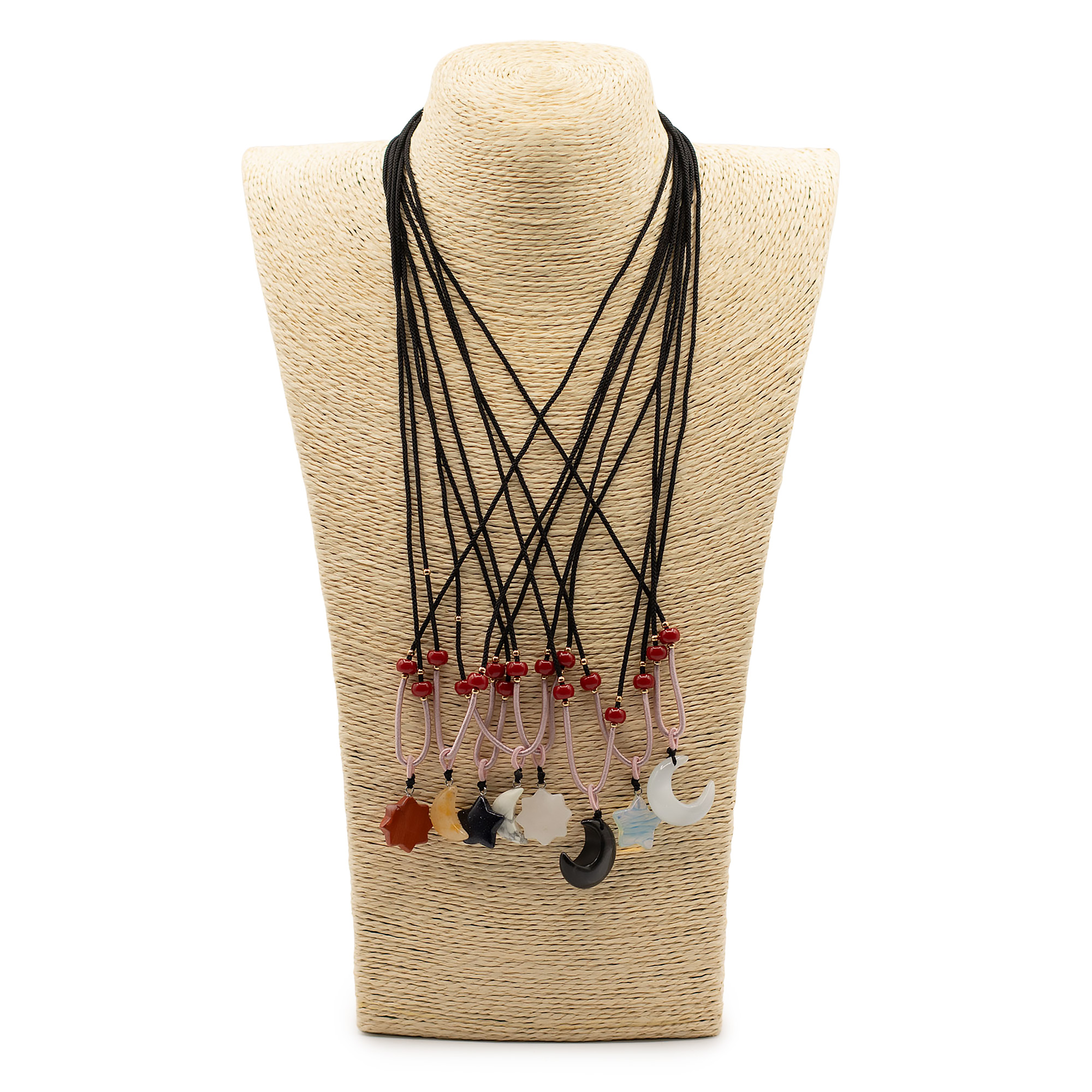 Each pendant is attached to an adjustable cord necklace and finished with subtle bead detailing, giving it a handcrafted look that is ready for immediate retail display.