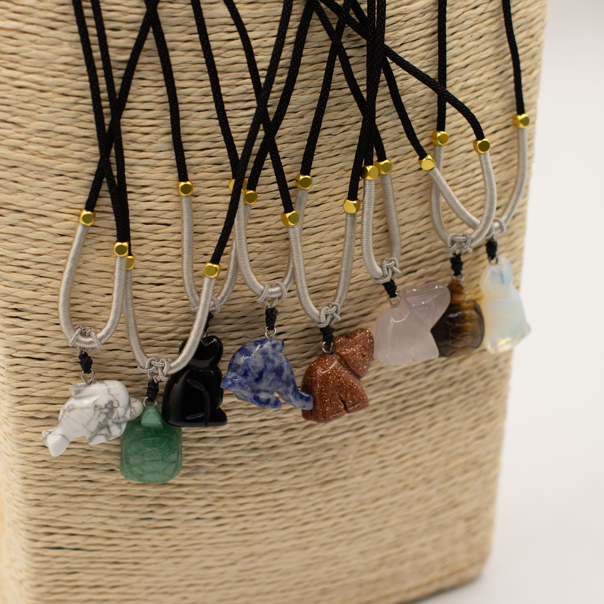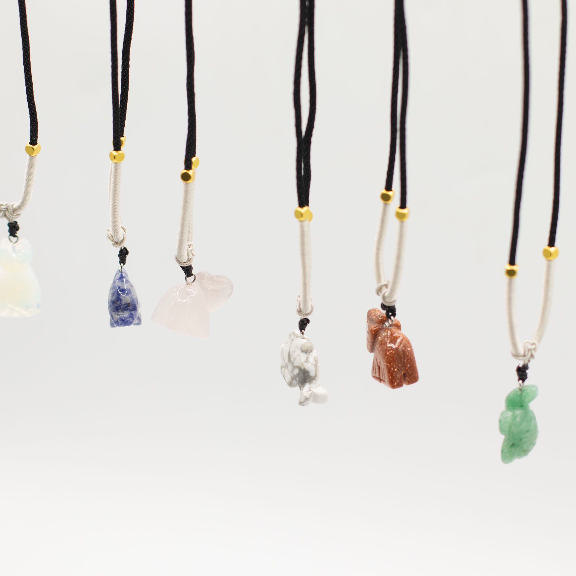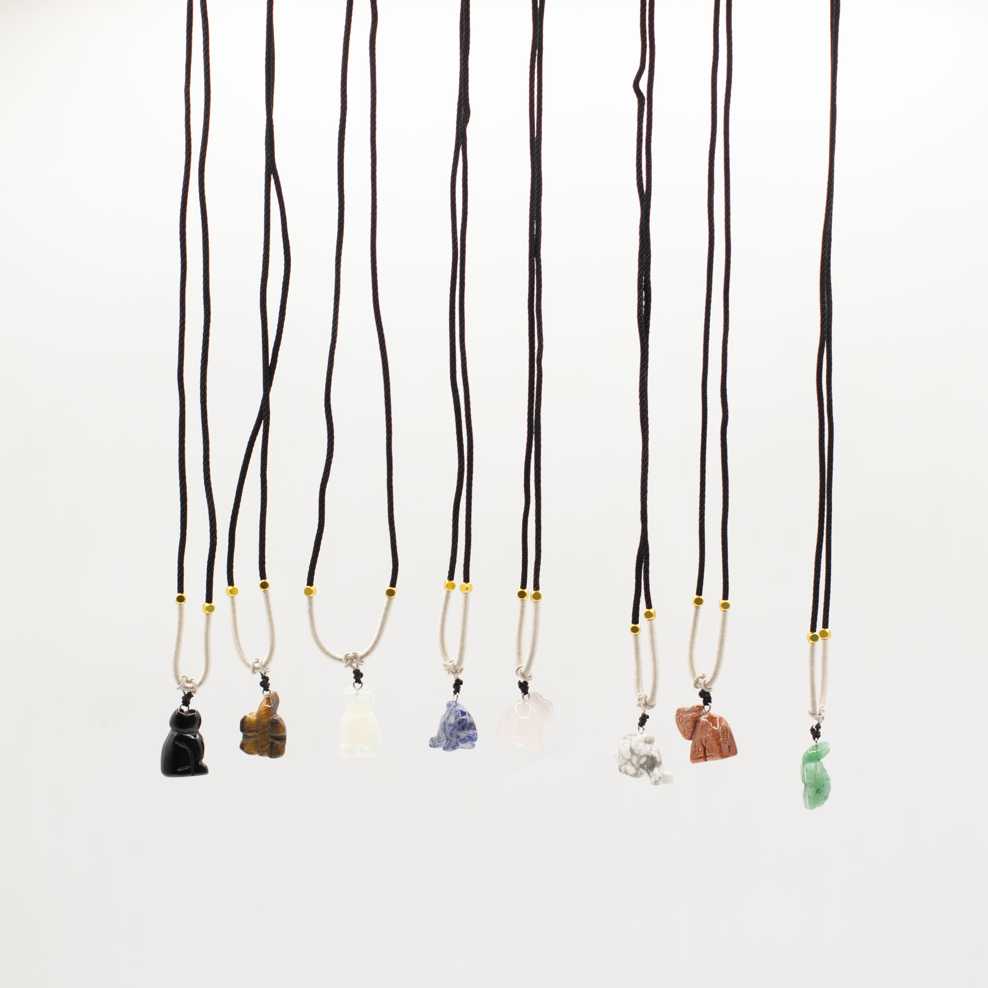 The assortment includes a range of animal motifs such as elephants, turtles, dolphins, cats and other well-loved creatures. Each piece is carved from natural gemstones, creating subtle differences in colour, texture and finish that add individuality to every necklace.