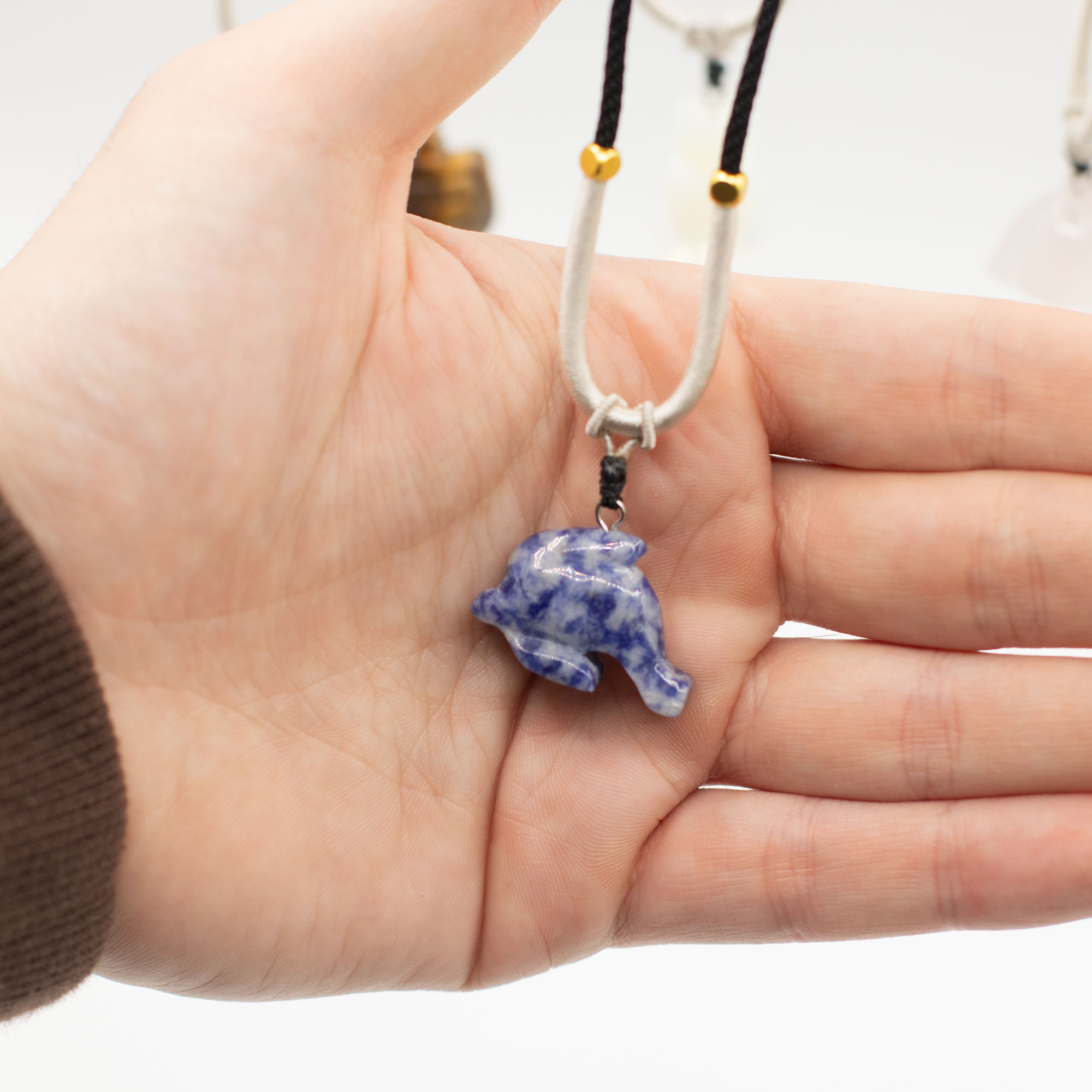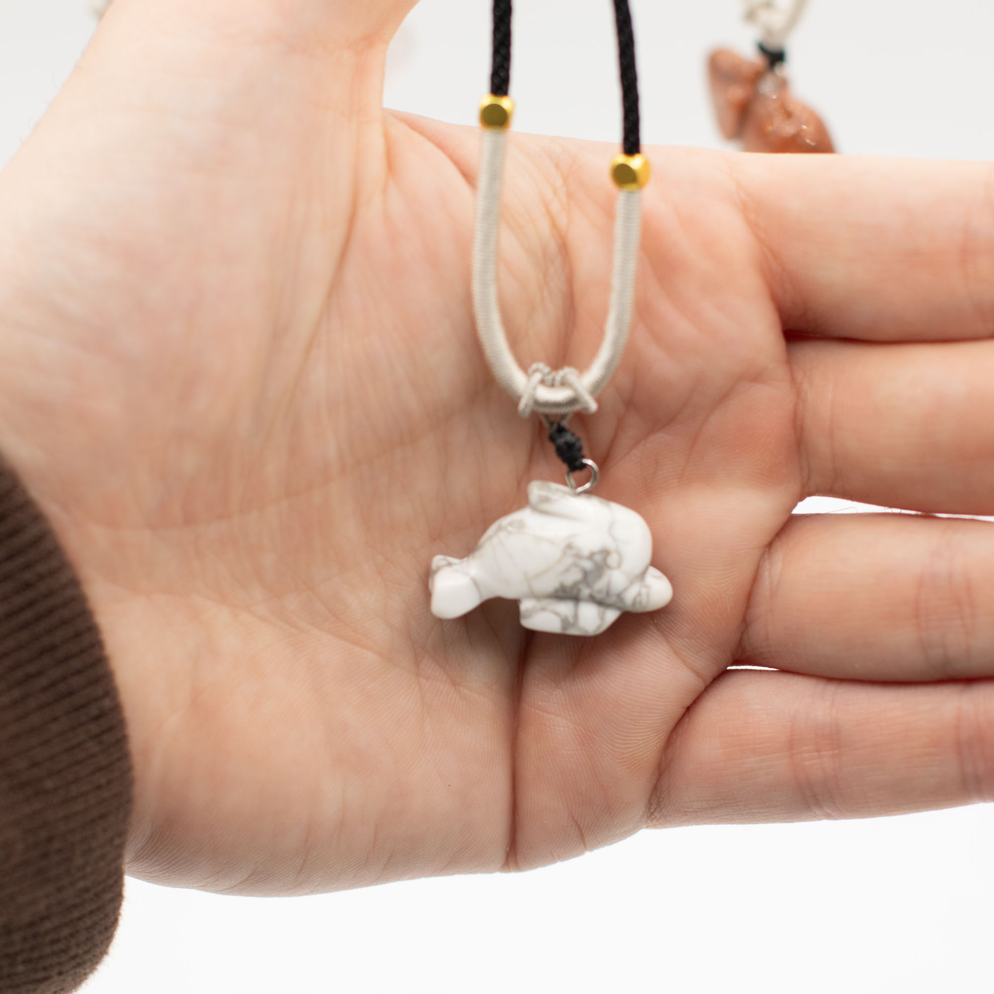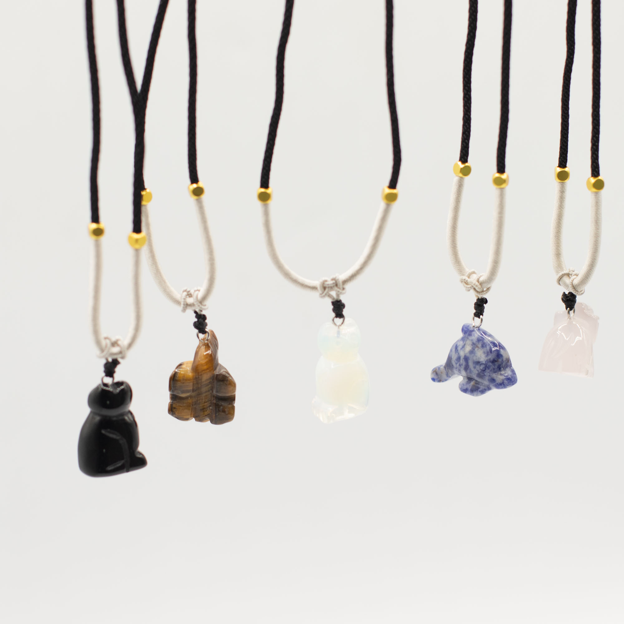 The assortment includes a range of animal motifs such as elephants, turtles, dolphins, cats and other well-loved creatures. Each piece is carved from natural gemstones, creating subtle differences in colour, texture and finish that add individuality to every necklace.