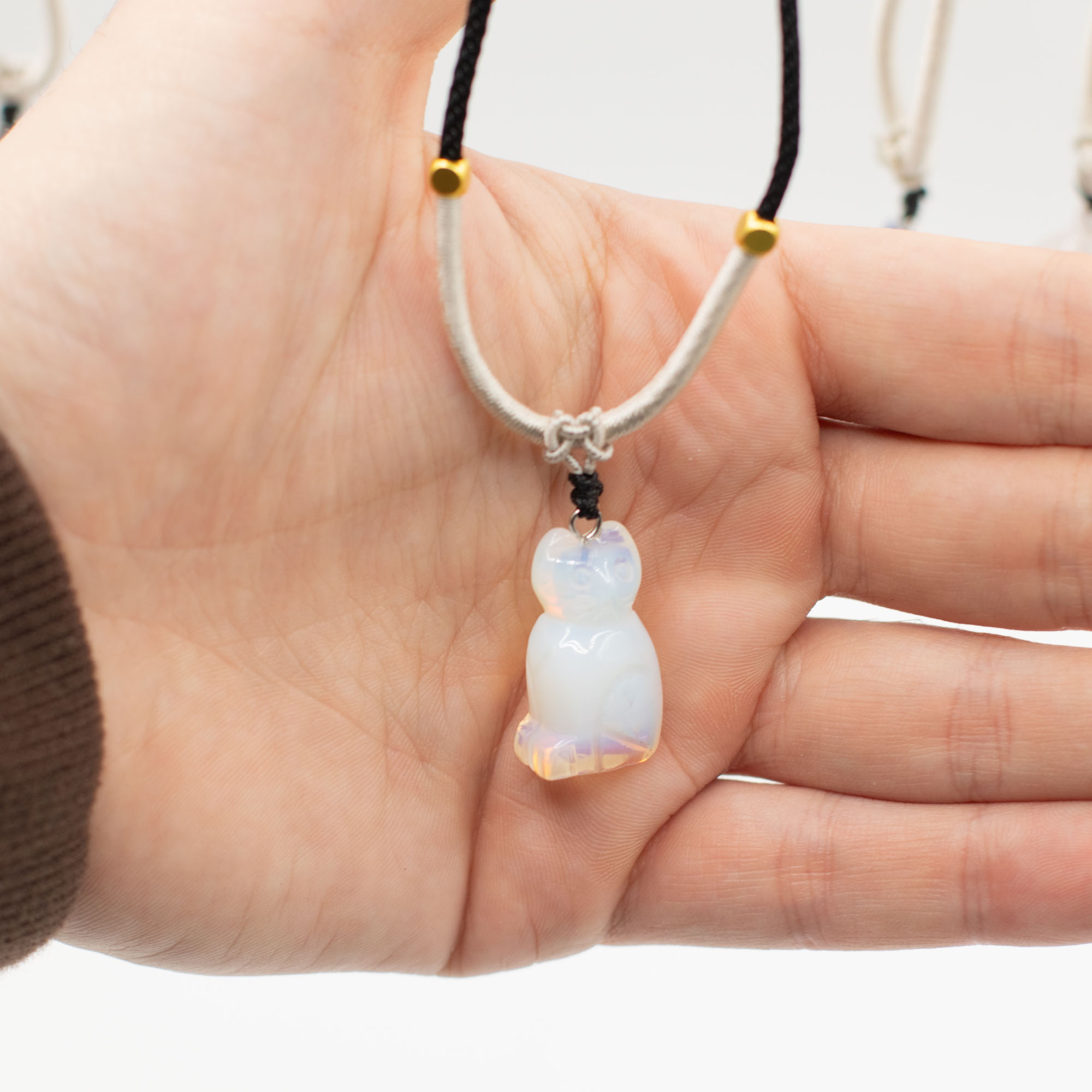 Each pendant is fitted onto an adjustable cord necklace and complemented with decorative bead accents, delivering a ready-to-display product with a handcrafted feel.