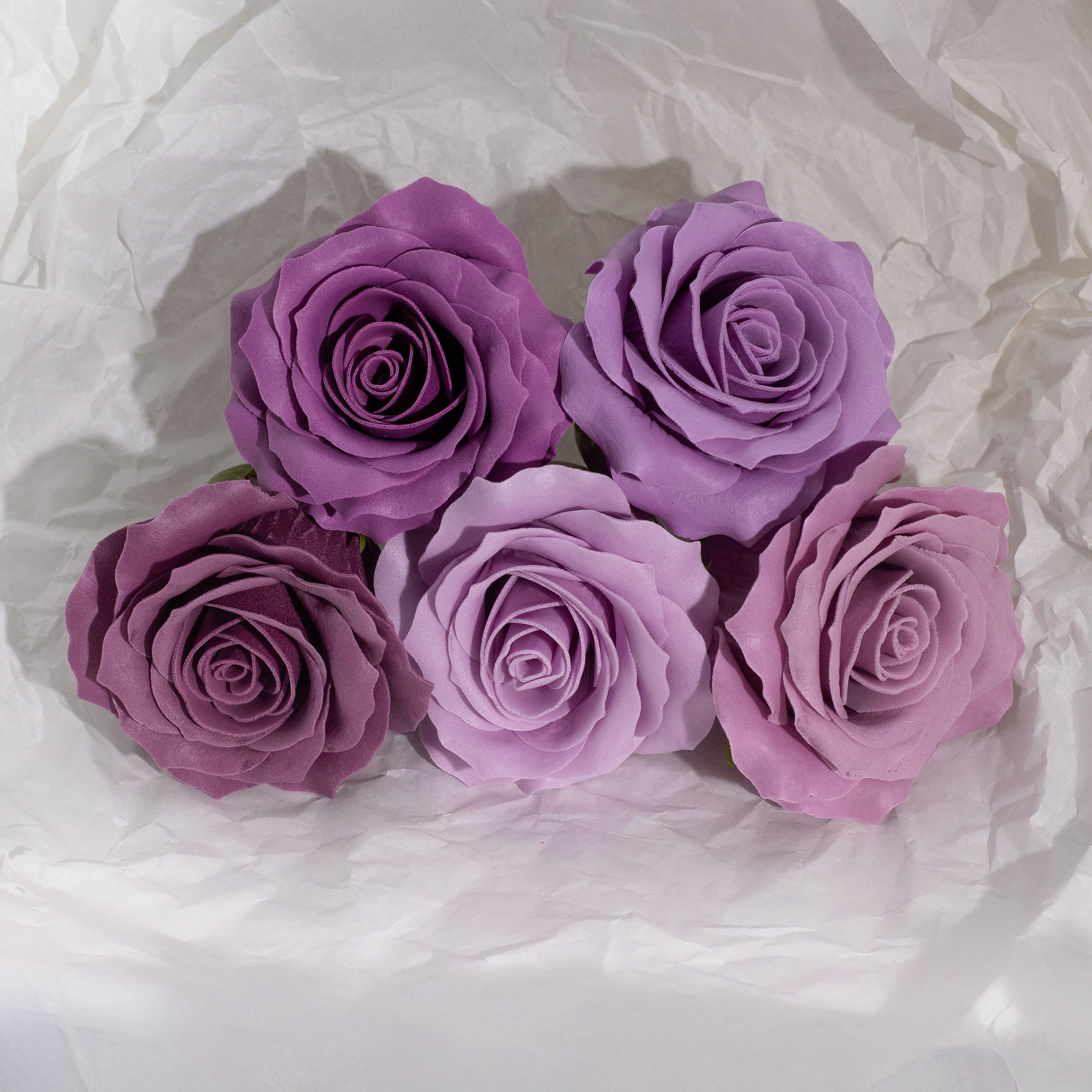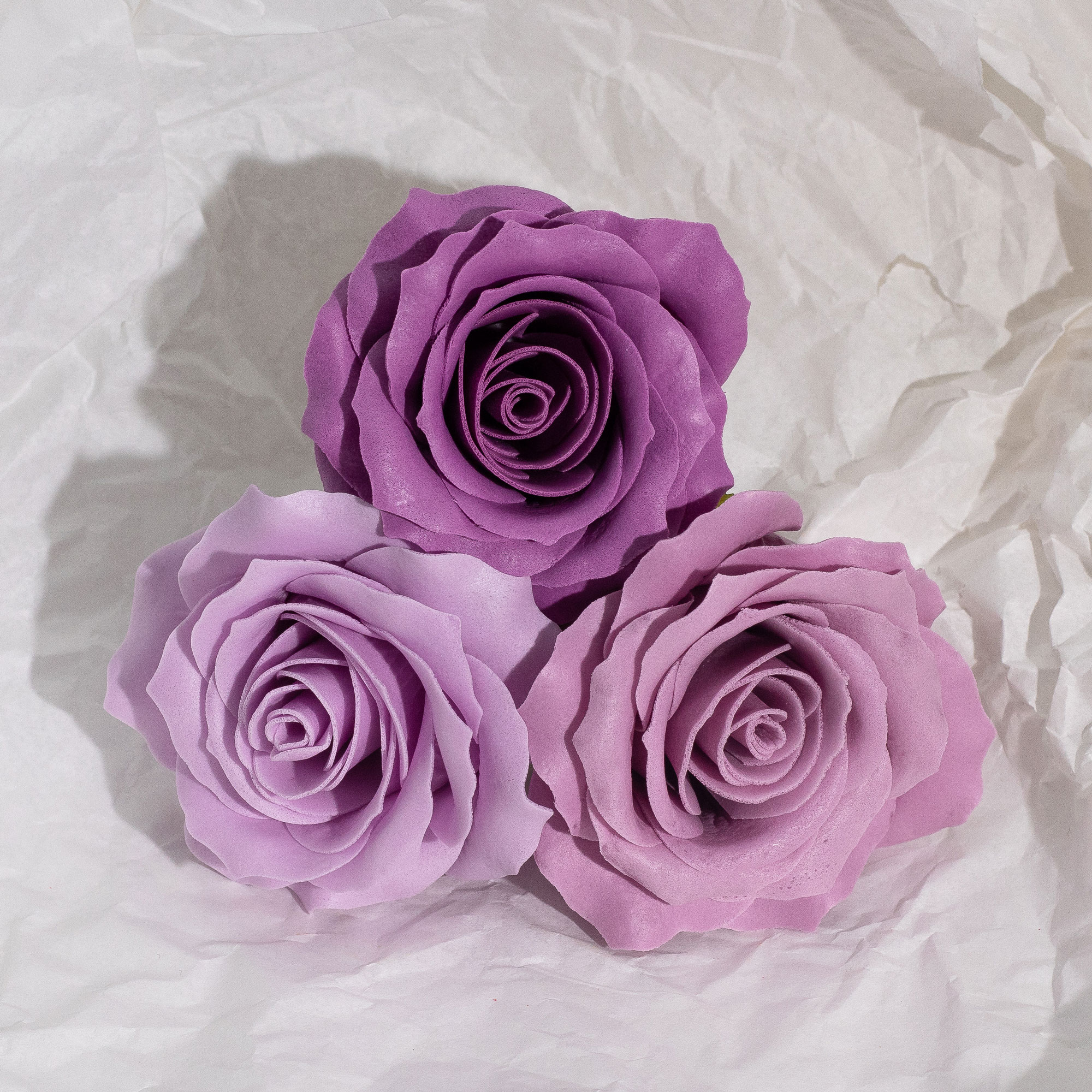 Create a calming atmosphere with Lavender Blush Soap Roses. This box includes 25 roses in graduated lavender tones, designed with realistic detail and finished with a light soap fragrance. Their soothing hues evoke relaxation and elegance, making them perfect for spa-inspired collections.