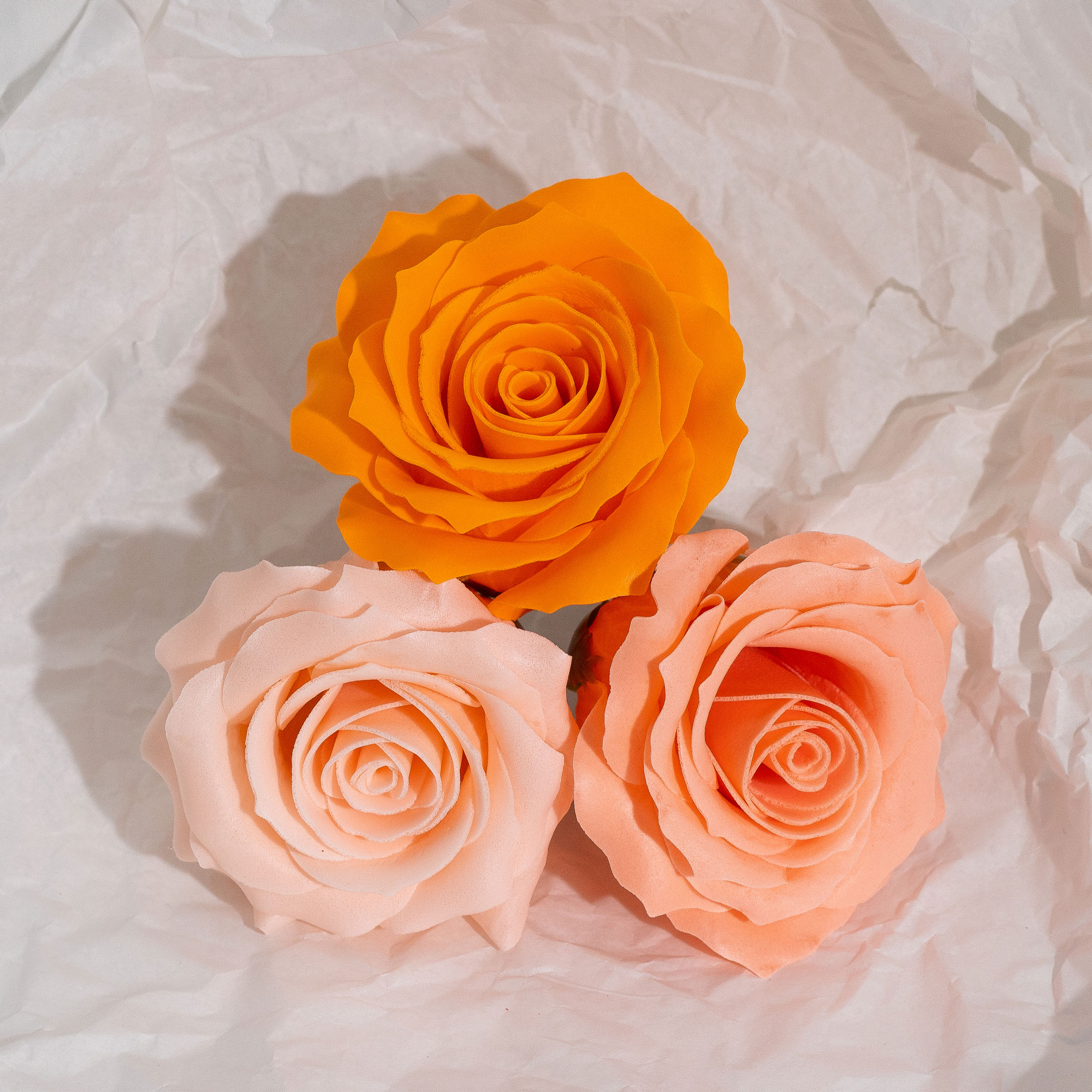 These versatile roses are perfect for seasonal baskets, pampering hampers, or bespoke bouquets. The warm tones make them suitable for spring and summer promotions, while their mild soap scent adds freshness to displays or bathrooms. They can be used decoratively or as gentle hand soaps, offering both charm and function.