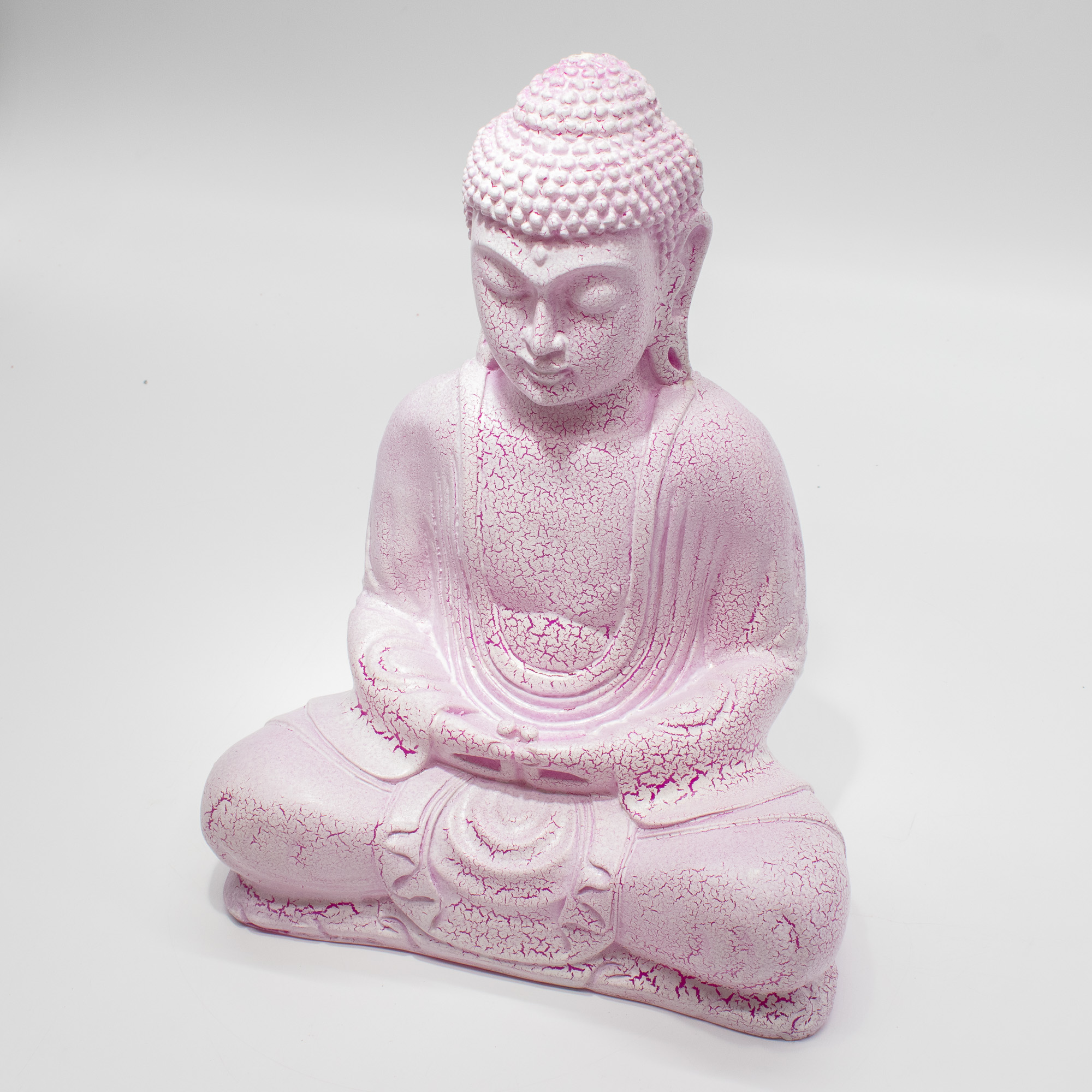 The seated meditation pose adds a sense of stillness, while the crackled finish introduces texture that becomes more pronounced when illuminated. The result is a piece that feels both decorative and immersive, shifting the mood of the space once switched on.