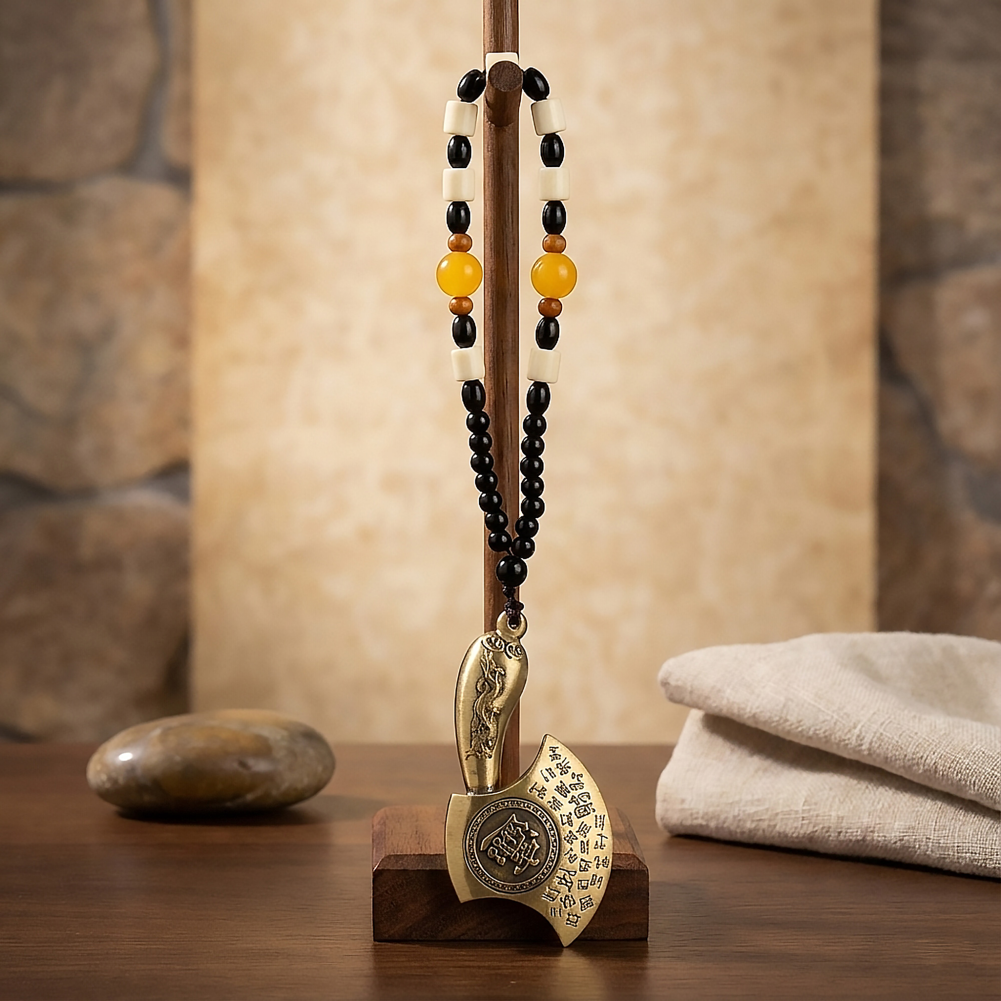 This Feng Shui Hanging Axe is based on a traditional ceremonial axe, symbolising authority, protection, and the safeguarding of wealth. In Feng Shui practice, axe motifs represent control over resources and the guarding of prosperity rather than force or conflict. The piece combines symbolic meaning with decorative appeal, making it suitable for spiritual spaces as well as interior-focused settings.
