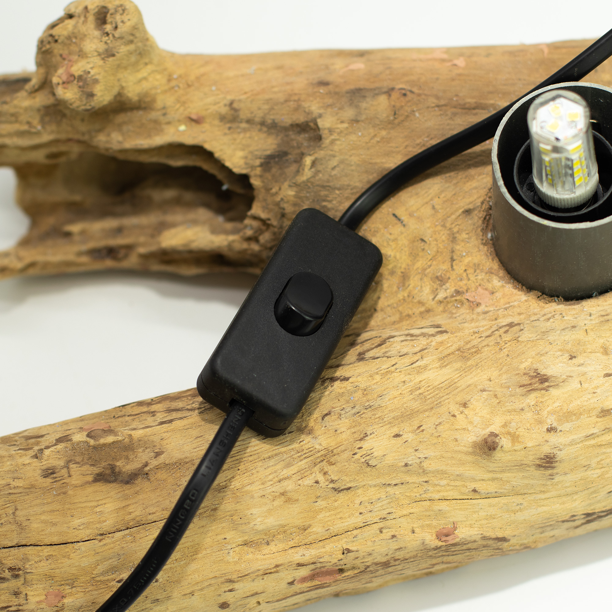 Each lamp is set on a natural Indonesian driftwood base, chosen for its organic shape and raw texture. No two bases are the same, giving every DriftGlow Lamp a unique, handcrafted character. The LED fitting is discreetly housed within the base, maintaining a clean silhouette while remaining practical and easy to maintain.