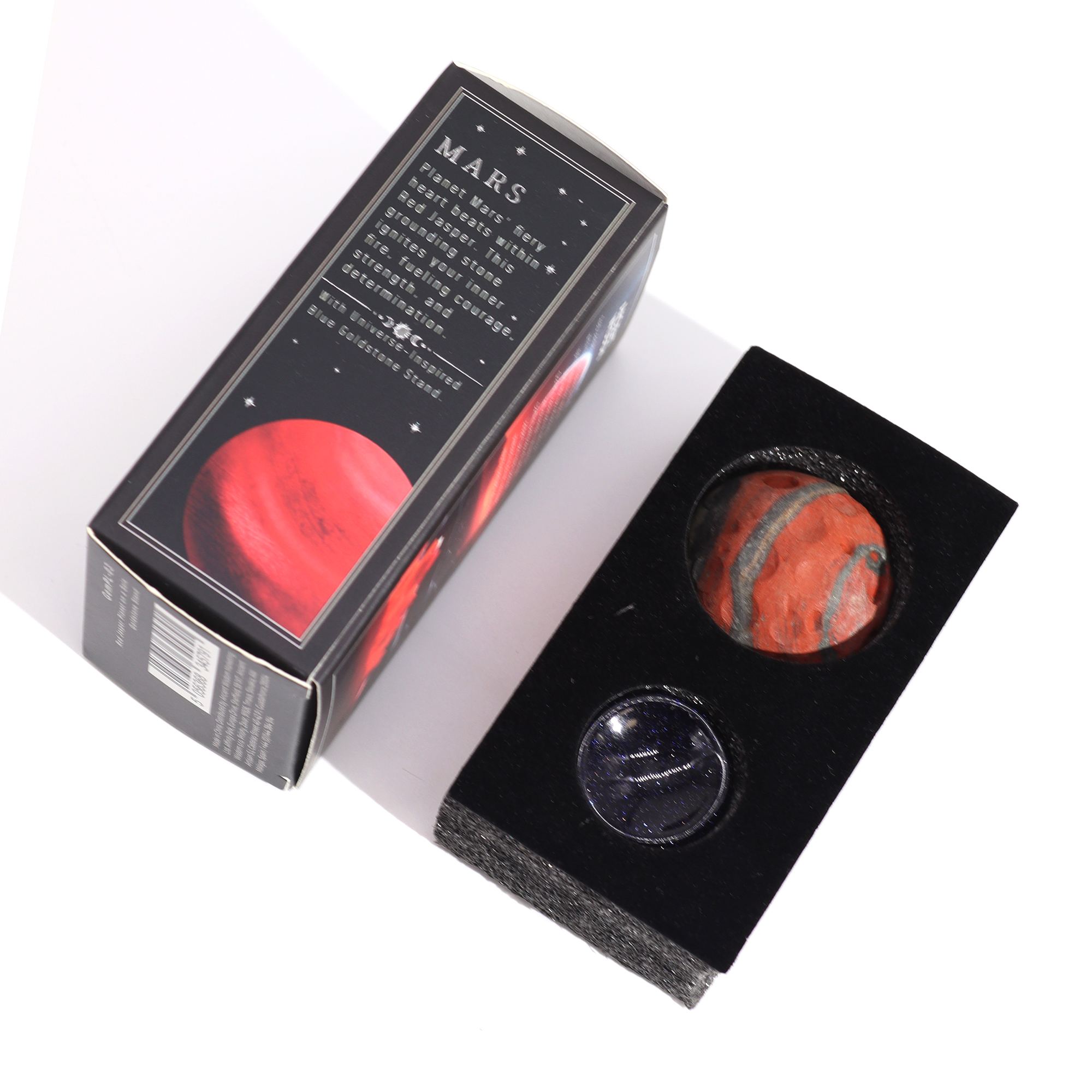 The Solar Goldstone Stand provides a grounding base for the Red Jasper sphere, inspired by the depths of space