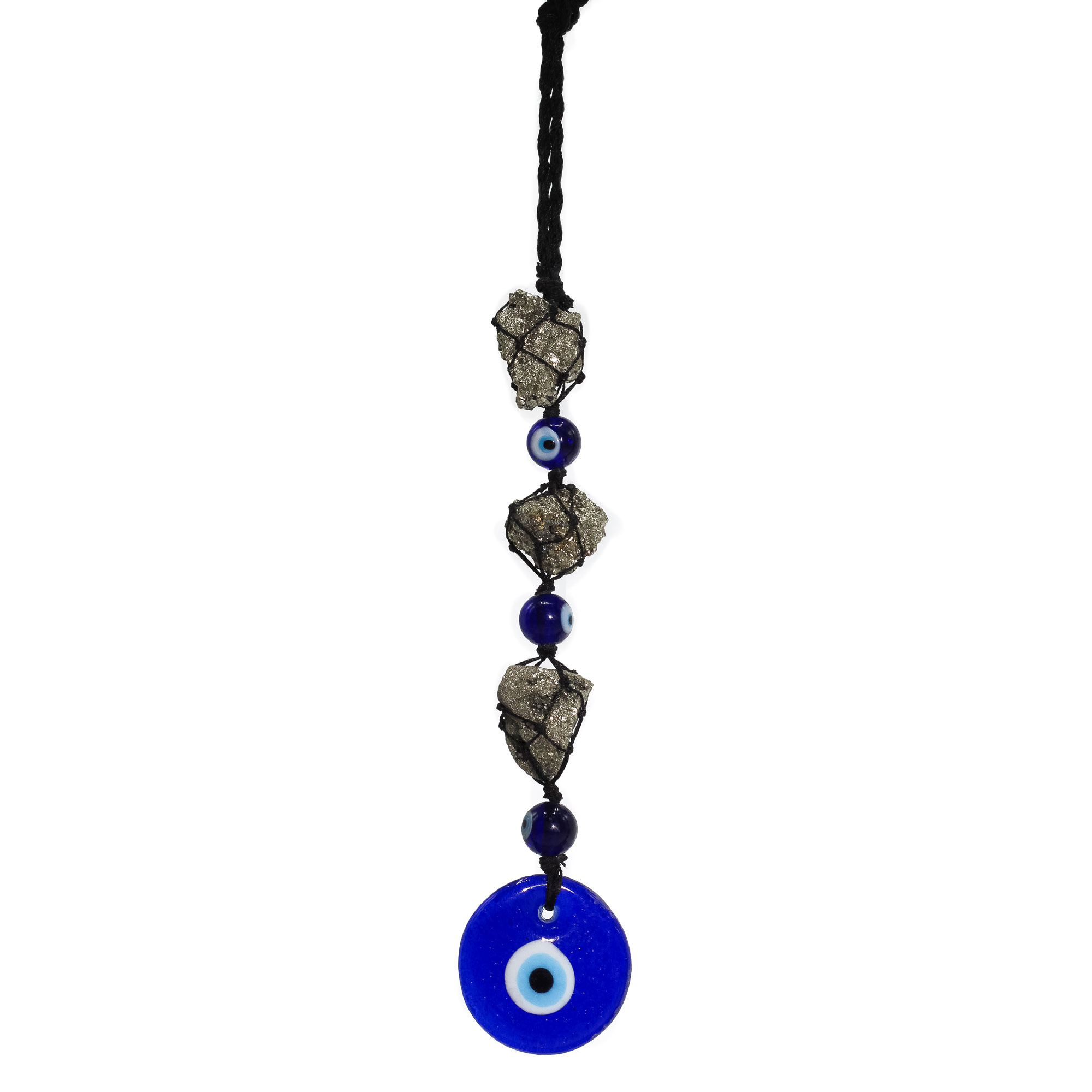 Introduce your customers to a product that beautifully blends modern design with spiritual symbolism — the Hanging Stone Pendant with Pyrite Stones & Beads featuring the Evil Eye.