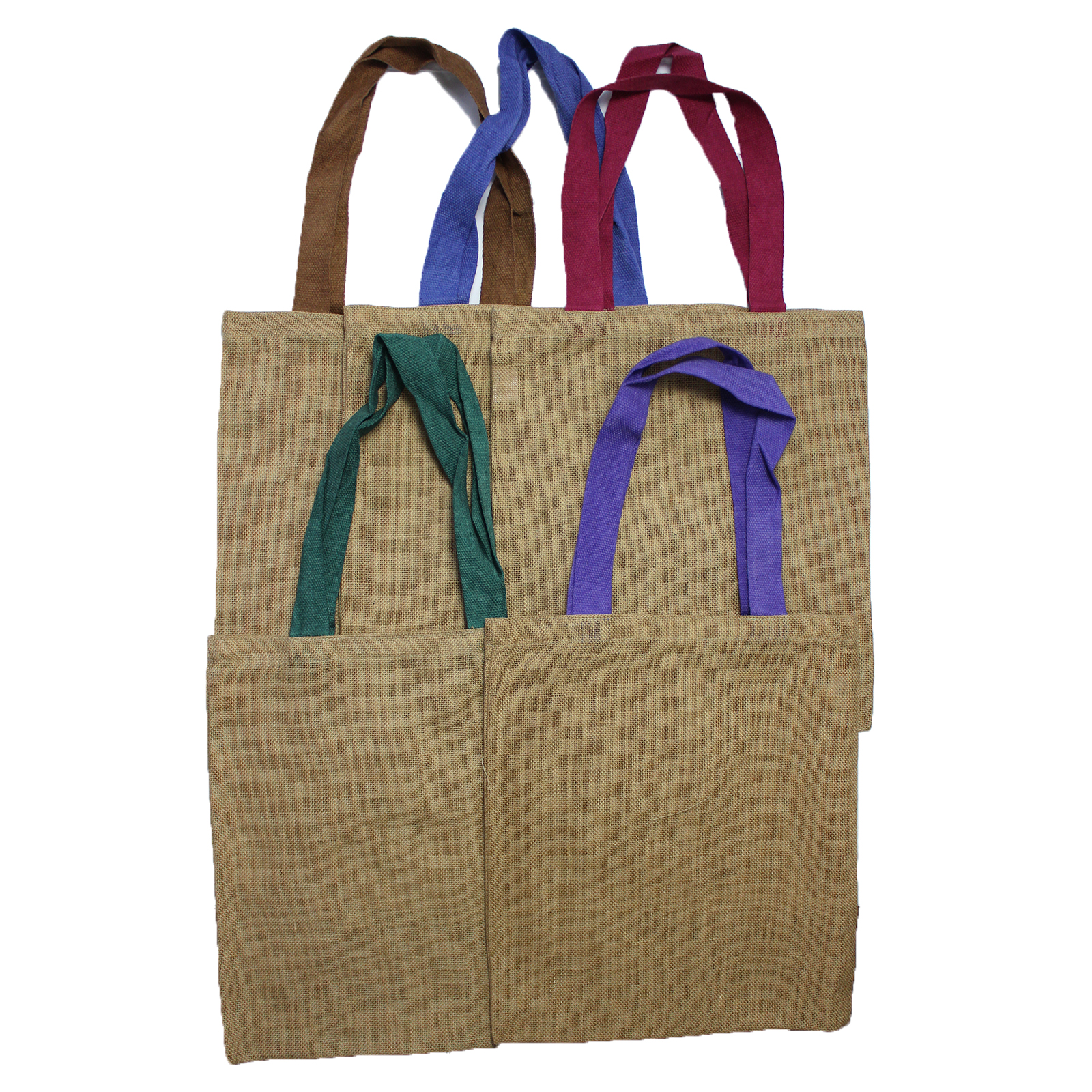 Our large jute tote bags feature five assorted color handles and cater to your unique style and preferences. Make a statement for a greener planet while enjoying the functionality and style of these 100% natural bags.
