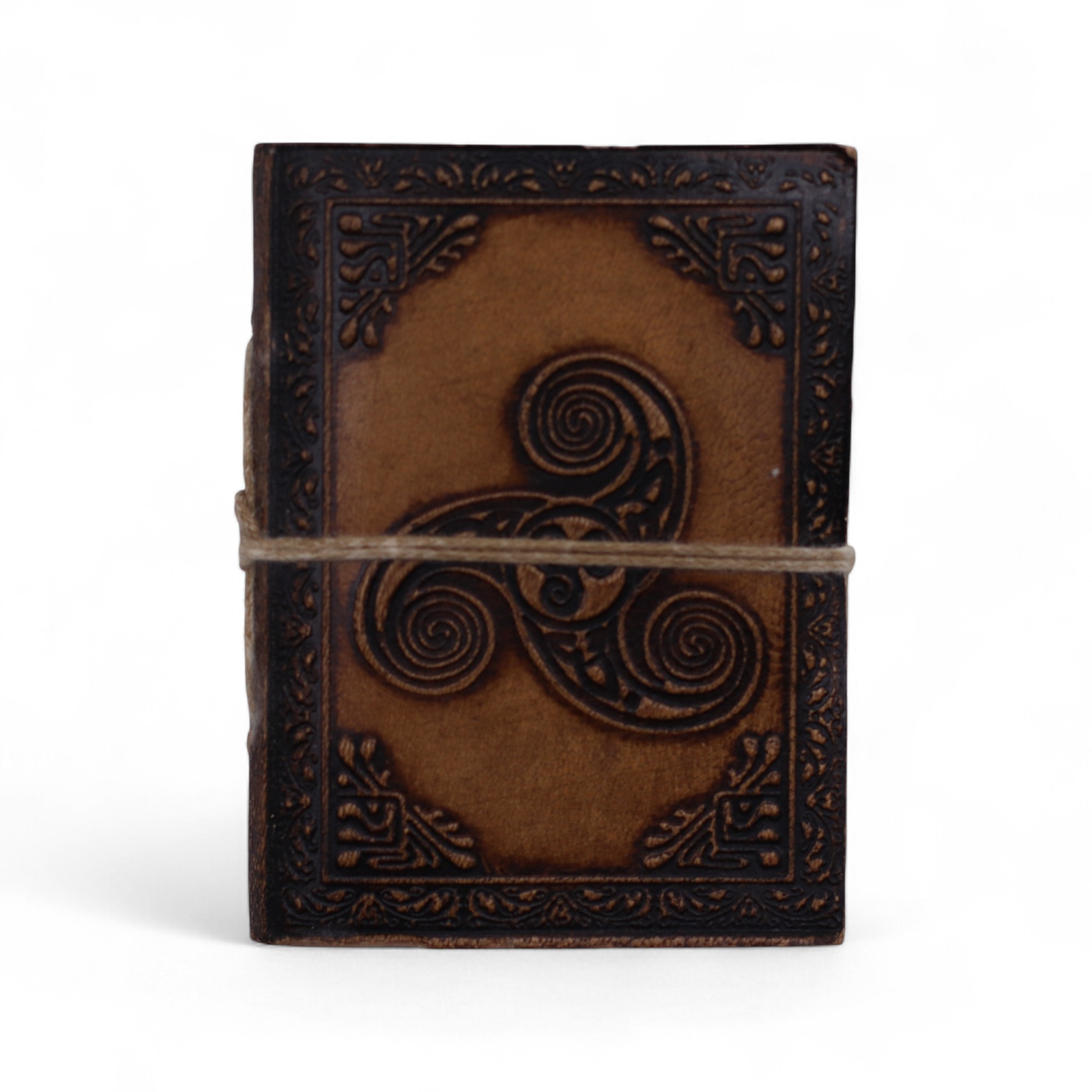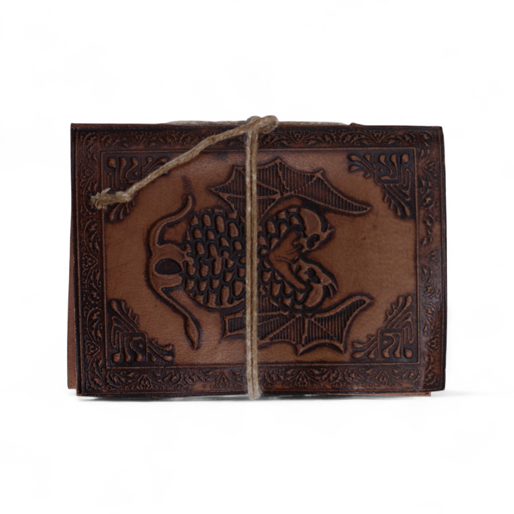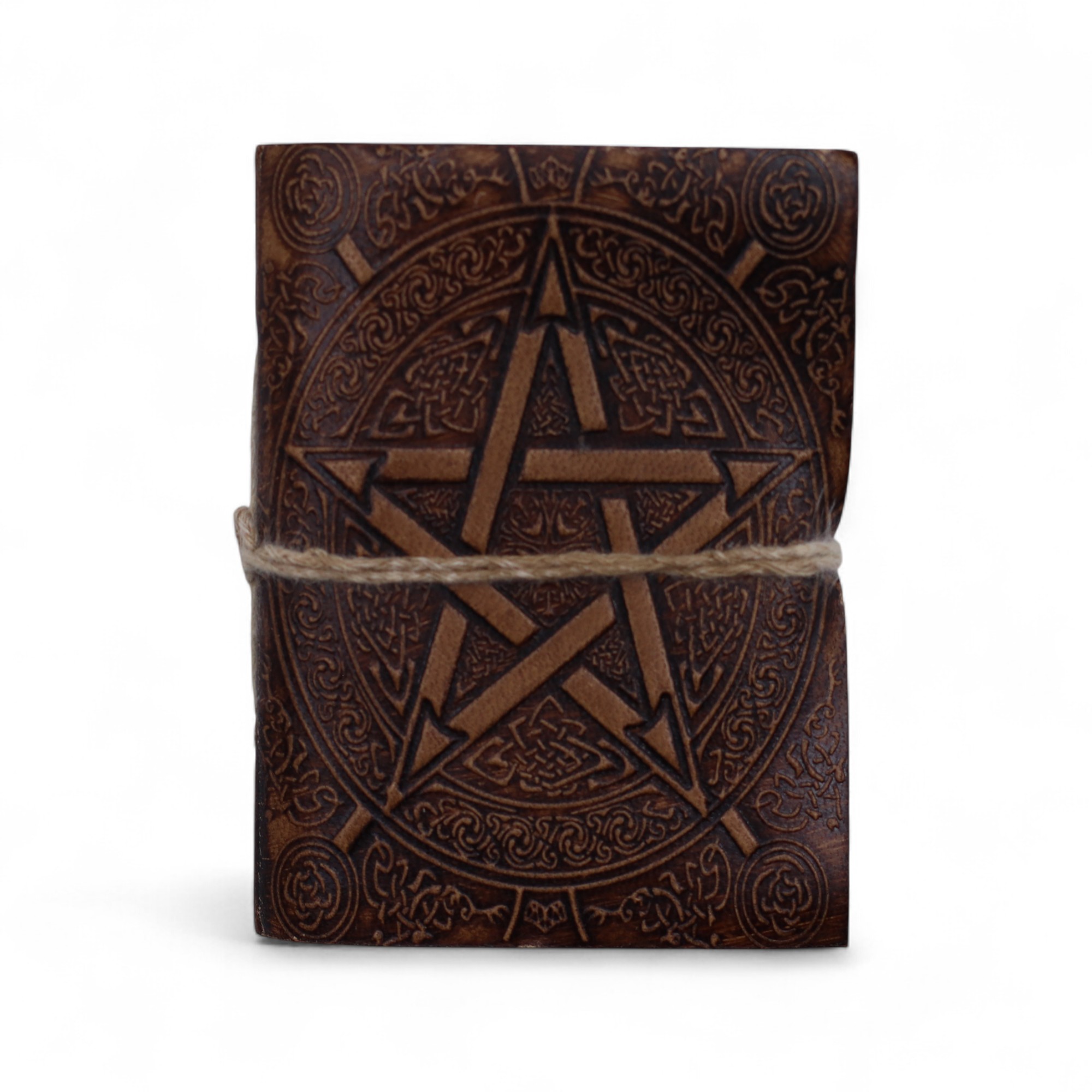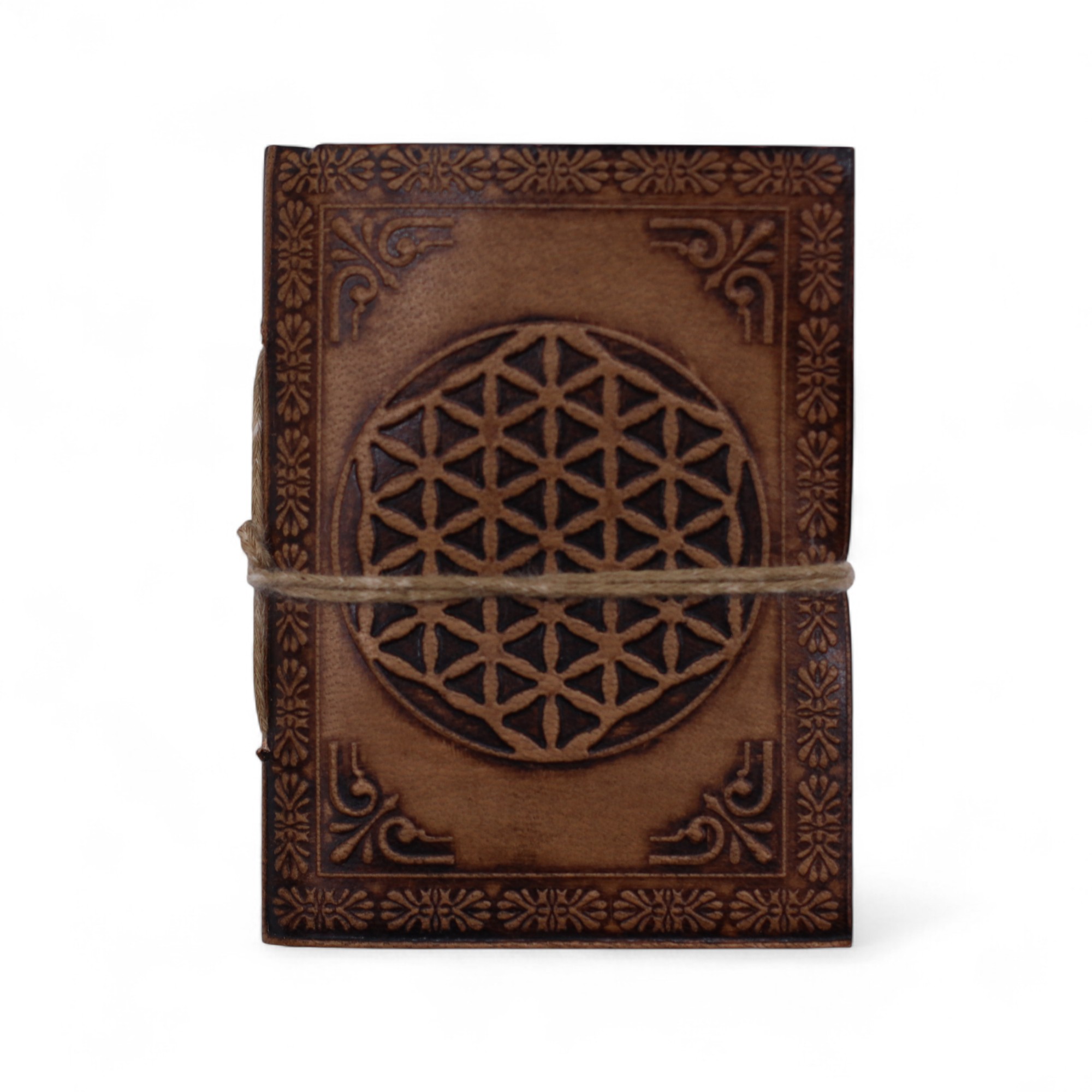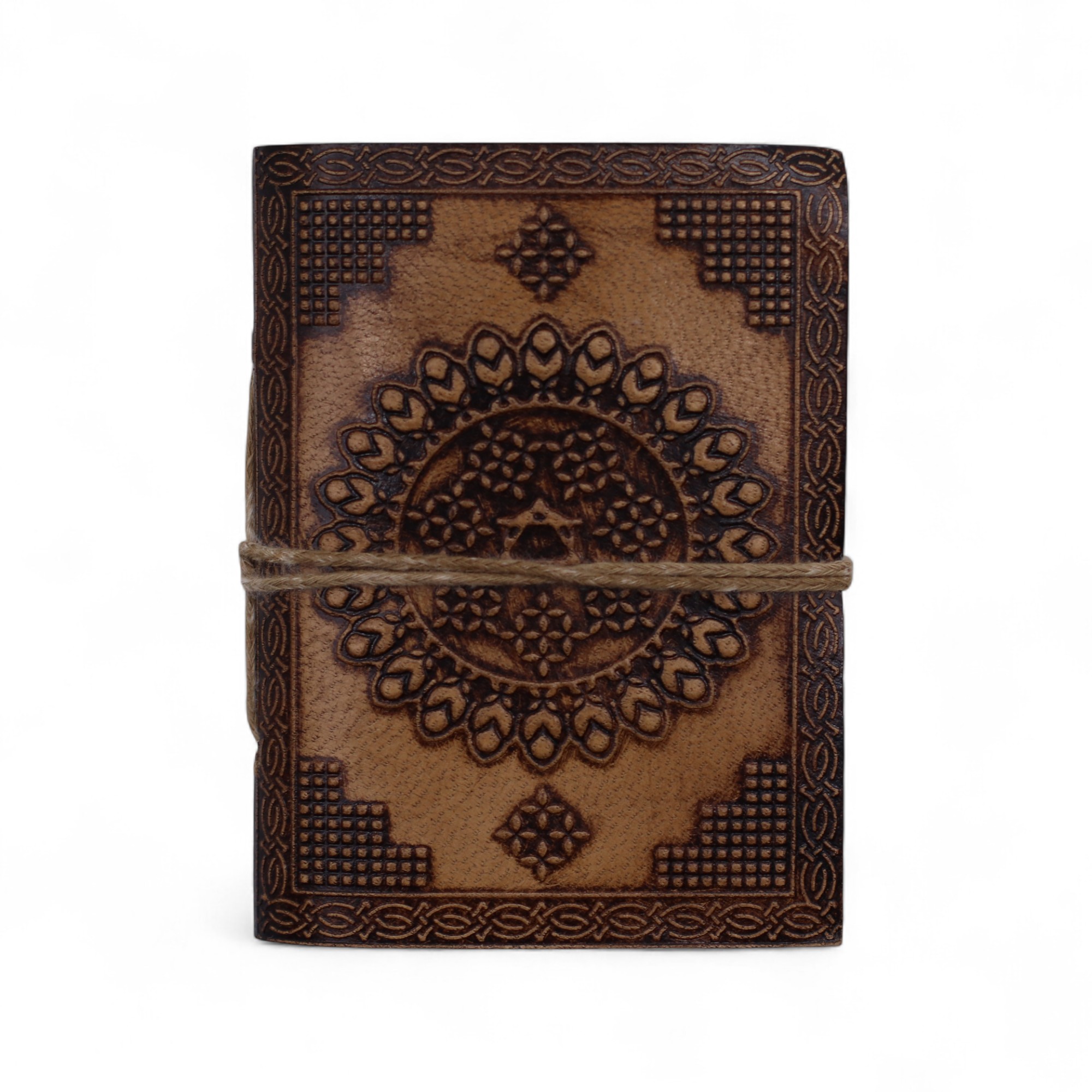 Each book features a soft leather cover embossed with intricate esoteric patterns inspired by astrology, sacred geometry, and spiritual symbolism. Their compact 4x3” size makes them perfect as pocket journals, travel diaries, or gratitude notebooks — easy to display and ideal for impulse purchases near the till.