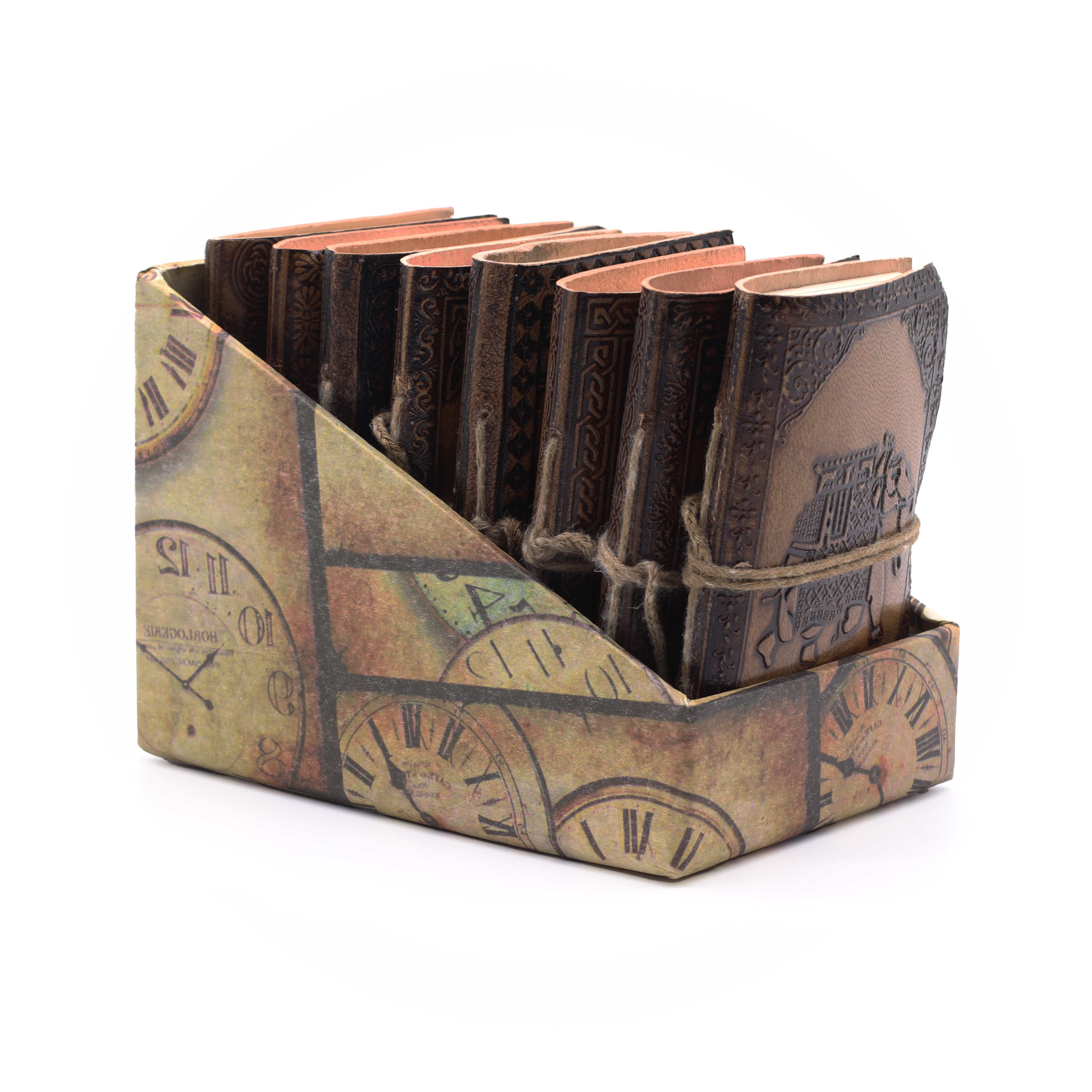 This charming set of small leather notebooks brings a touch of old-world mystery to any retail space.