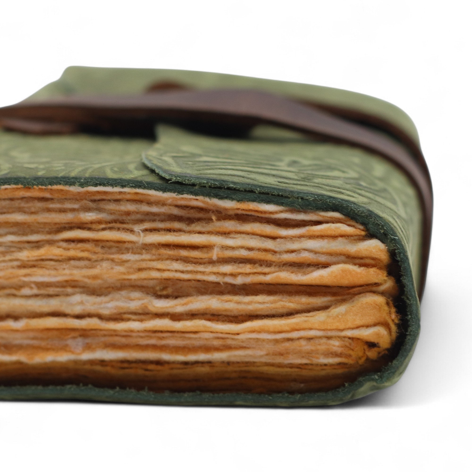 Richly embossed with a maze motif, this green leather notebook captures the essence of inner exploration and personal growth. The maze design has long symbolised life’s journey — a path of learning, patience, and self-discovery — making this notebook particularly appealing to spiritual and meditative customers.