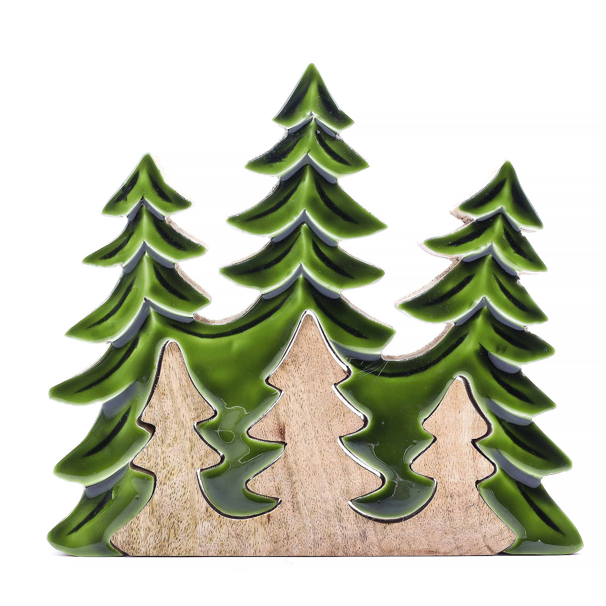 This striking Three Trees 3D Wooden Decoration brings a significant touch of woodland charm to any display. Hand-carved in India from sustainable mango wood, it features a compelling 3D design of three trees. Finished with a rich, glossy enamel, this piece beautifully blends rustic texture with vivid green accents. Fairly traded and ethically made, it's an ideal focal point for nature-inspired themes or a substantial gift.