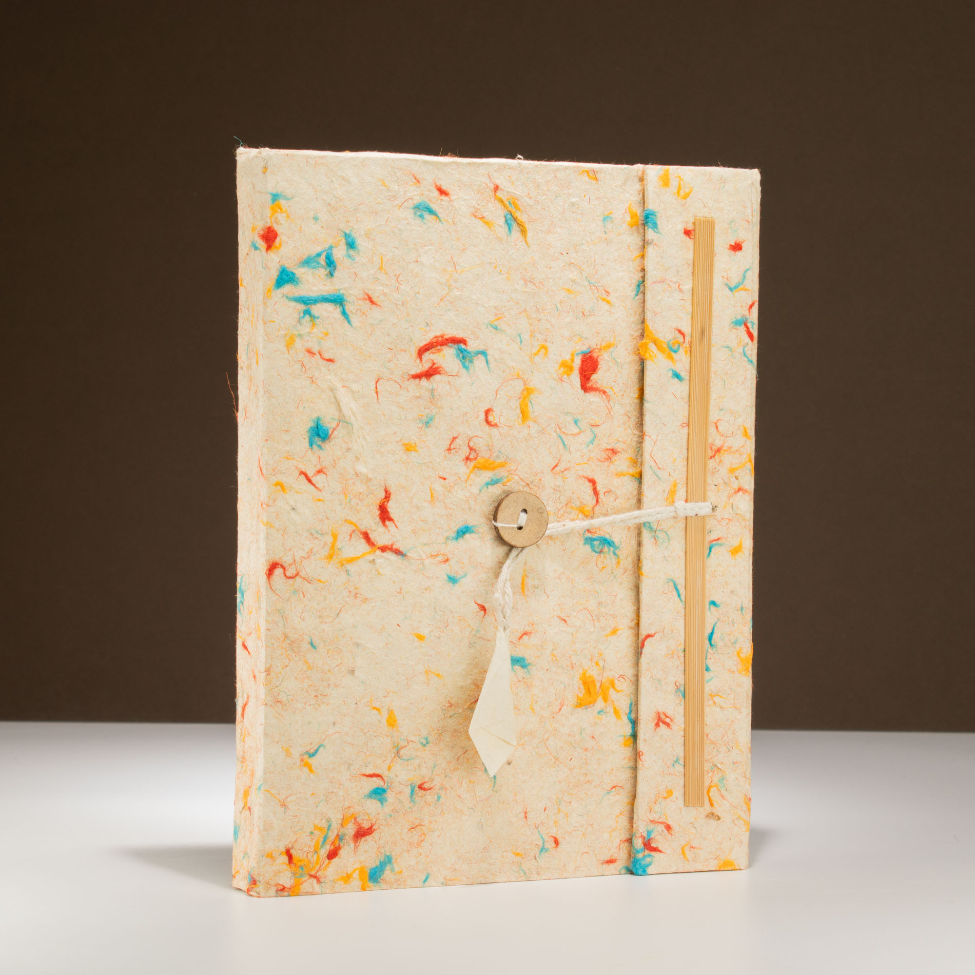 Made with recycled cotton fibres, this large Lokta notebook has a naturally speckled cover in soft, earthy tones. Each one is slightly unique due to the organic materials used. Inside are 45 pages of blank Lokta paper, perfect for writing, journaling or sketching.