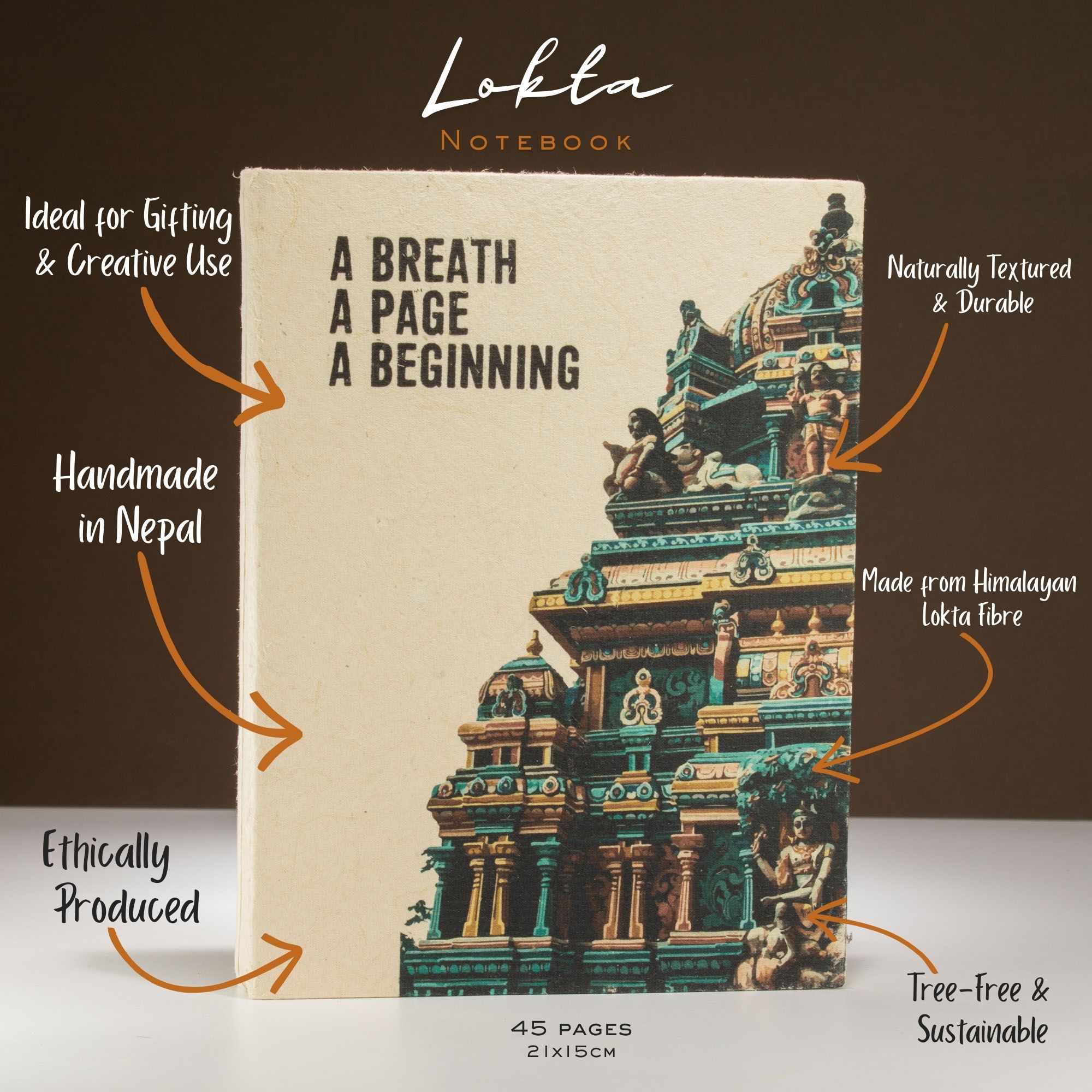 With 45 blank pages of high-quality Lokta paper, there’s space for journaling, reflections or even sketching. The cover is soft and handmade, with the design printed in gentle colour tones.