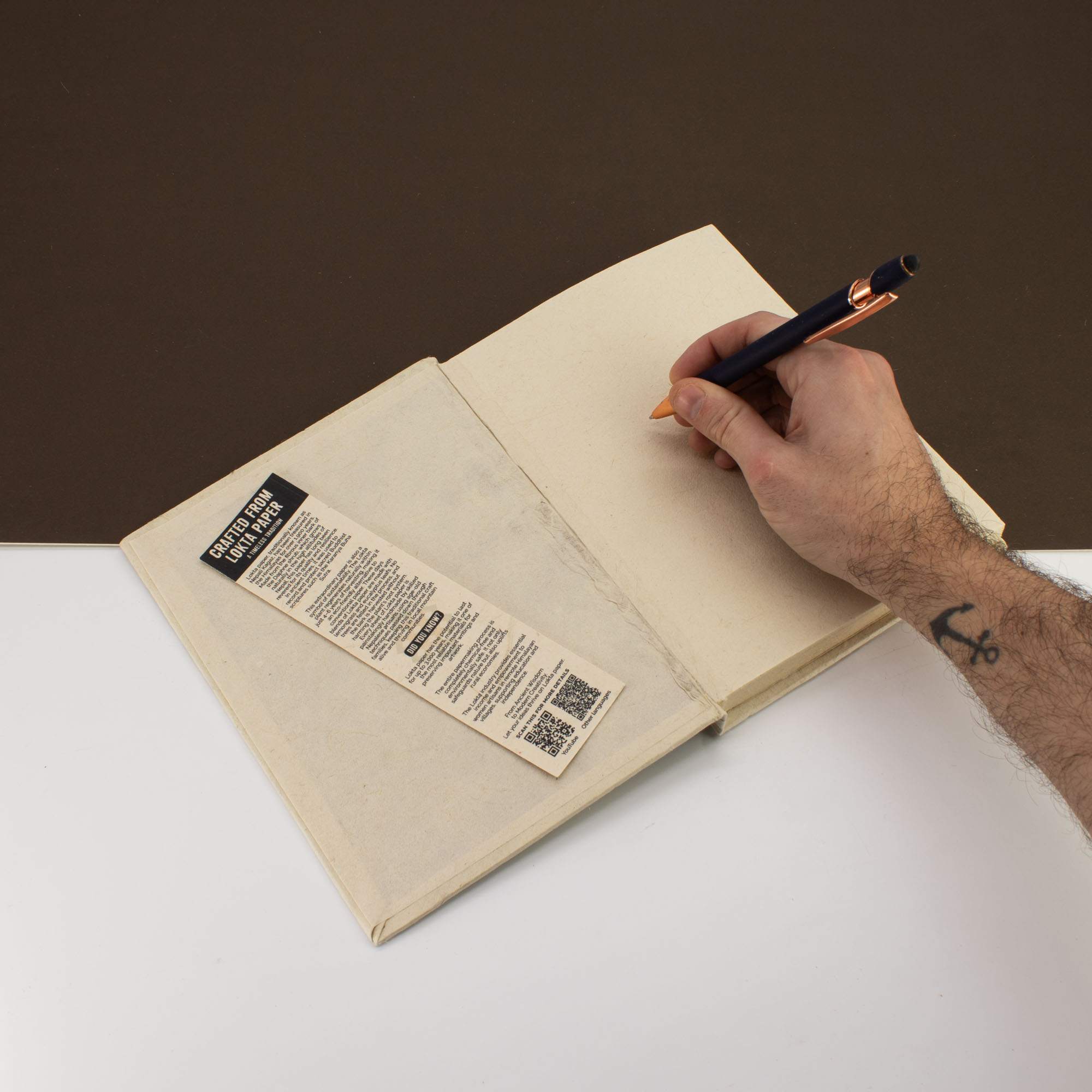 The notebook includes a bookmark. Sized at 21x15cm, it’s generous without being cumbersome - ideal for daily use or travel. This product is a strong seller for concept stores focused on personal development, mountain or outdoor themes, or conscious gifting. It appeals to customers looking for a clean aesthetic with meaning and intention. When placed next to other inspirational designs in the collection, it contributes to a powerful display that mixes craftsmanship, sustainability and thoughtful messages.