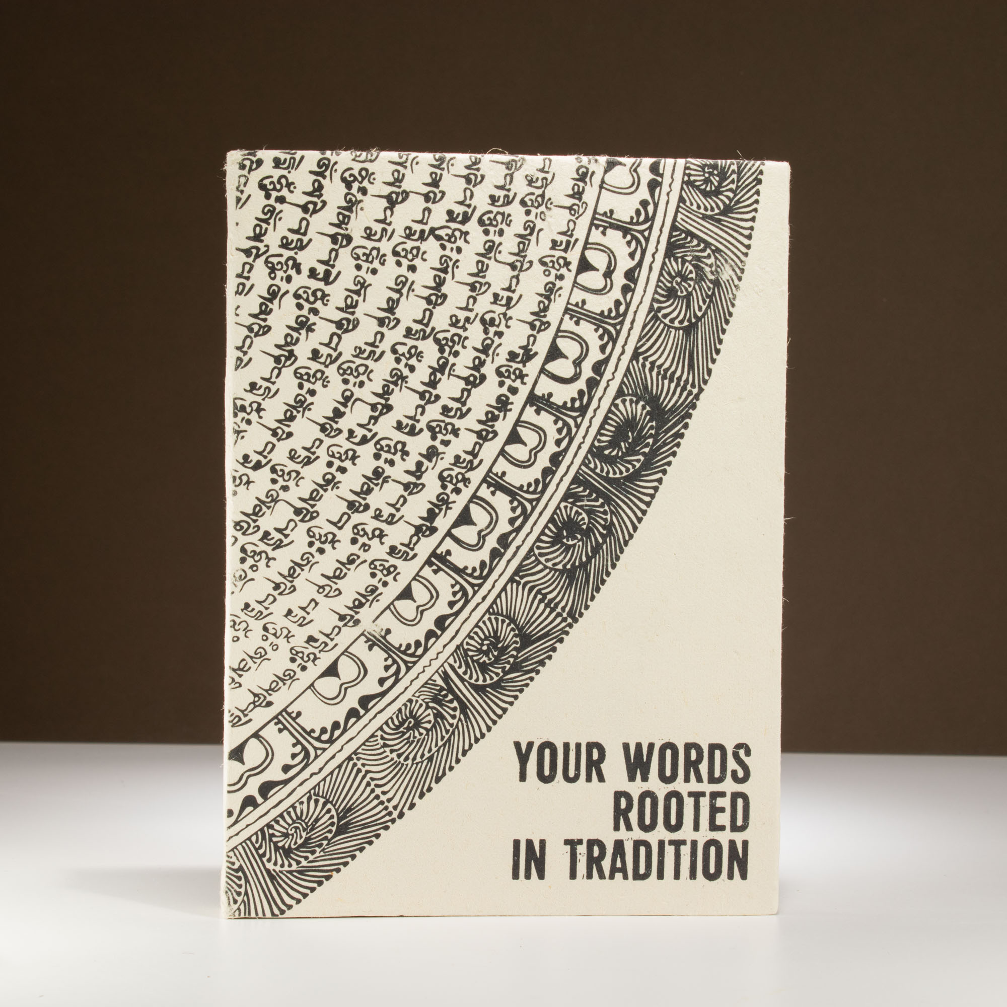 With its striking black-and-white tribal-style motif and the thoughtful phrase “Your Words Rooted in Tradition,” this notebook makes a refined and memorable addition to any stationery collection. The cover design draws on heritage influences, while the message invites deeper thought and meaningful journaling.