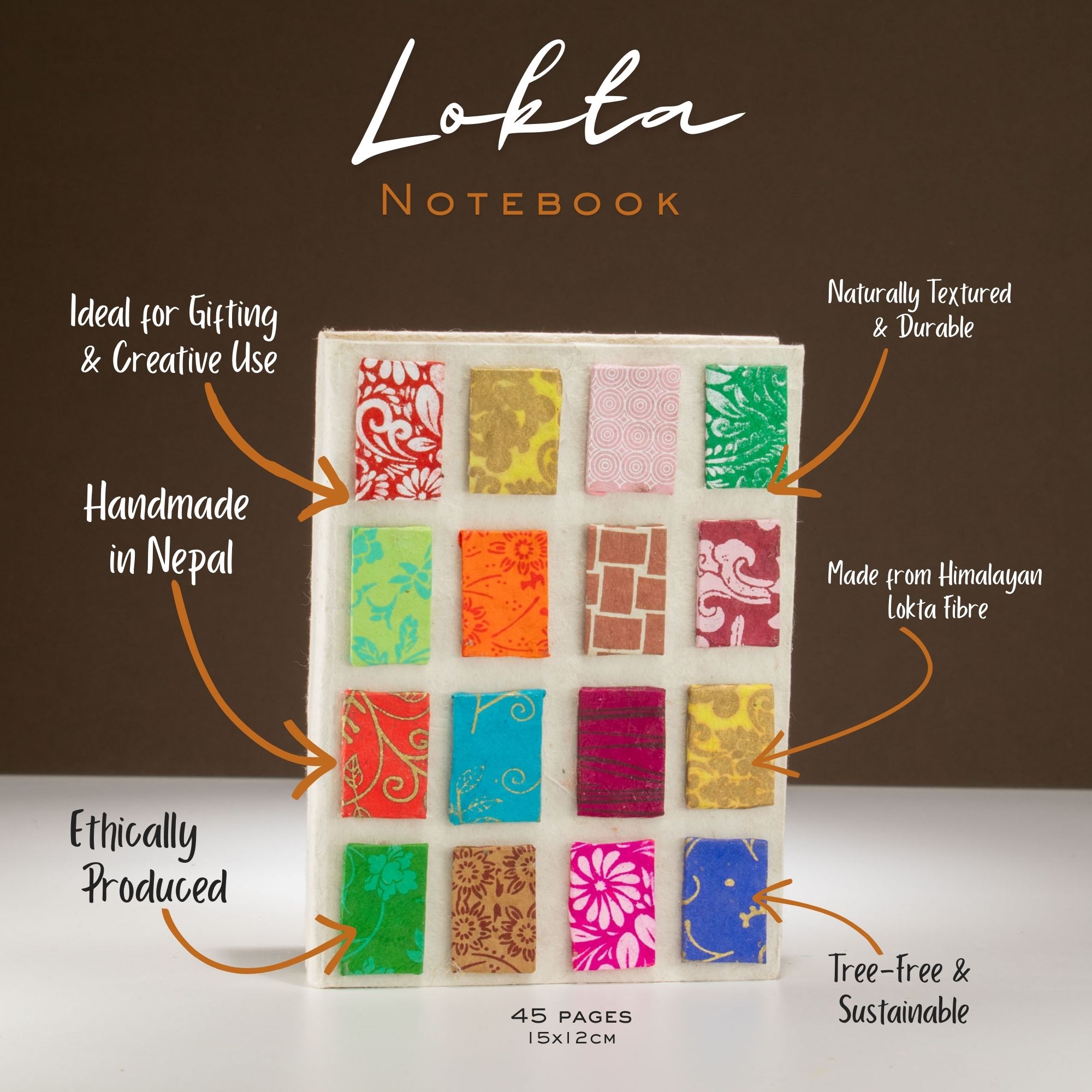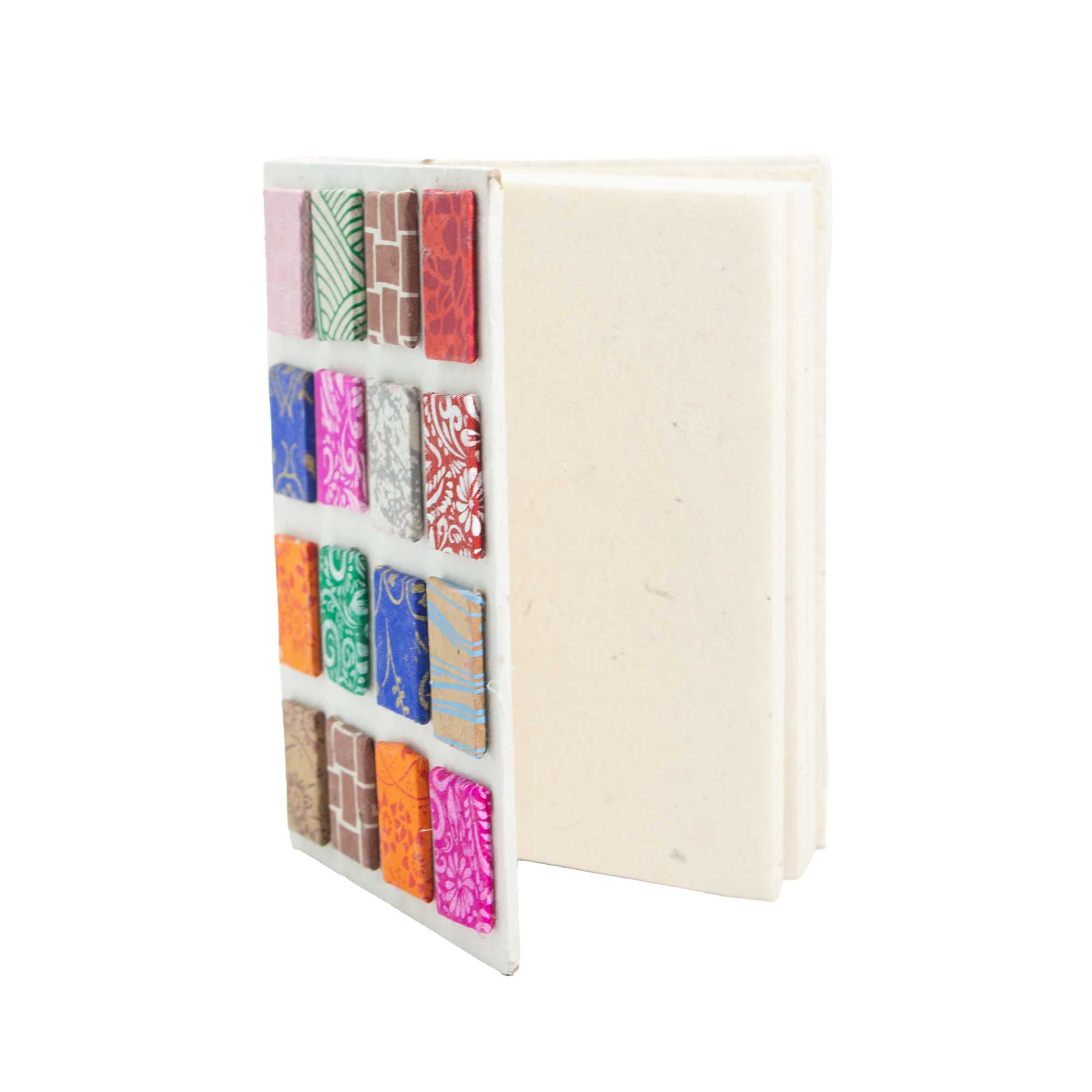 This natural edition of the Mini Tiles notebook strips the design back while keeping the detail. Set on a Lokta paper base, the individual patterned panels feel softer and more textural, allowing the colours to sit gently rather than dominate.