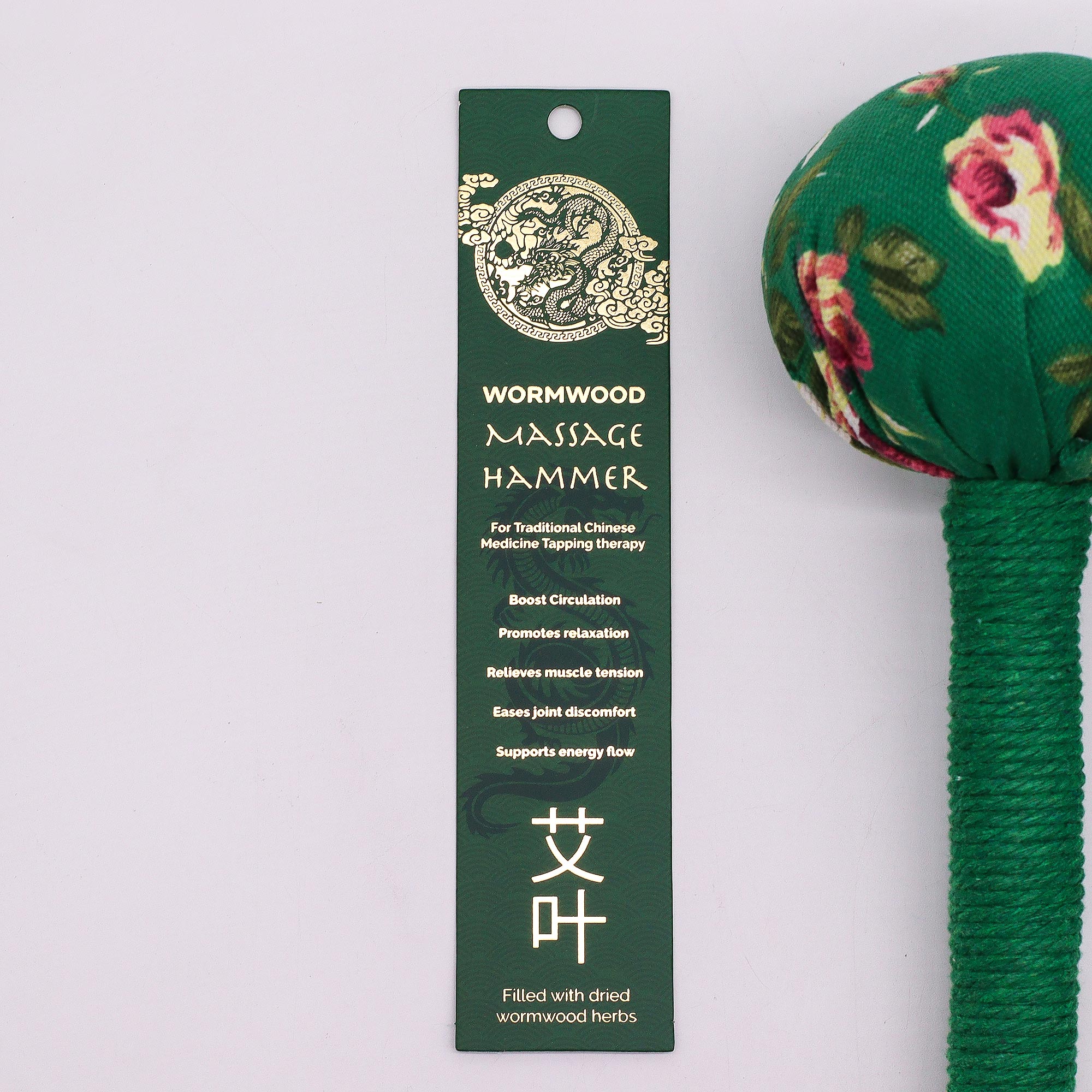 Wormwood (Artemisia absinthium) is a fragrant herb long used in traditional Chinese wellness practices for its warming and circulation-supporting qualities. When combined with gentle tapping massage, it helps ease tension, support relaxation, and promote overall wellbeing for the back, shoulders, and legs.