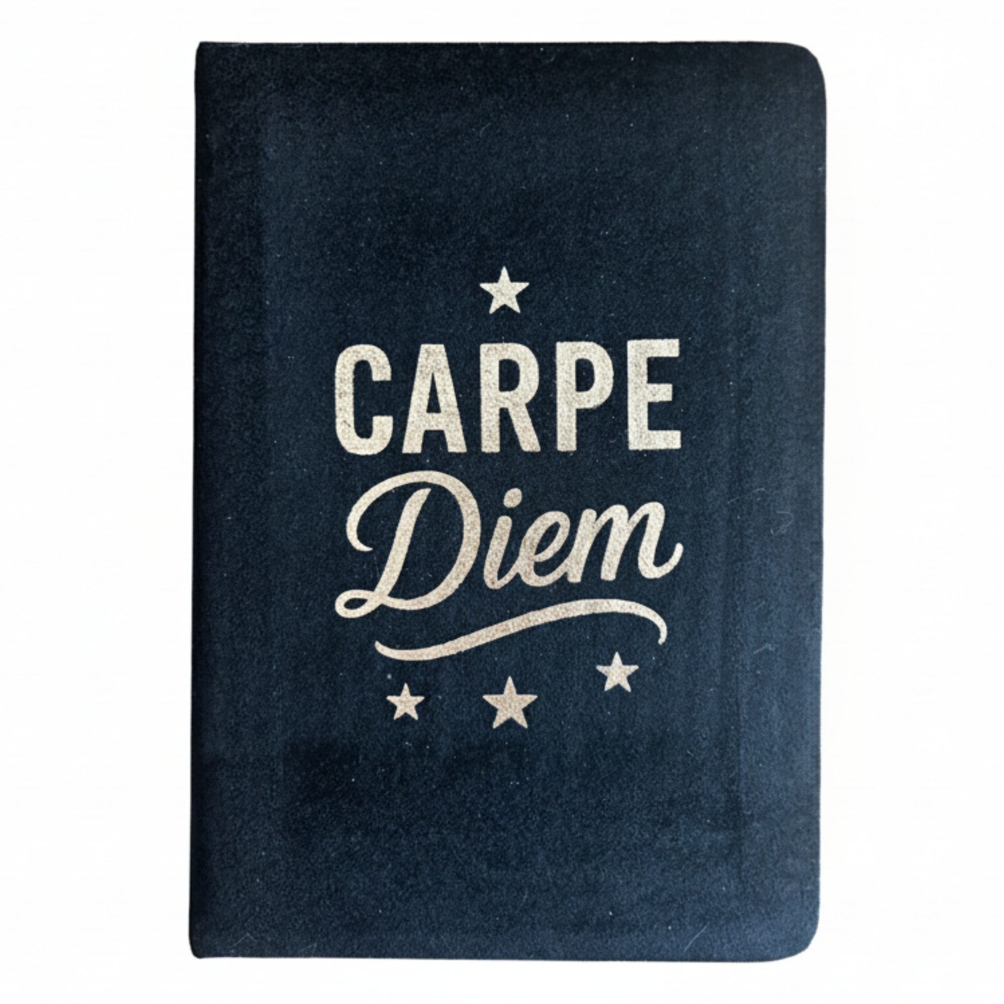 Add a sense of purpose and style to your stationery range with the Carpe Diem Velvet Notebook in elegant black. The soft velvet cover, embossed with the inspiring message Carpe Diem, makes it a standout choice for customers who appreciate both design and meaning.