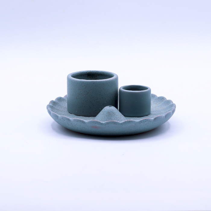 Made with care, it’s designed to hold Palo Santo sticks, smudge bundles, and incense sticks — keeping ash neatly contained while adding beauty to any space. The smooth glazed finish and floral shape make it equally decorative and practical, perfect for meditation corners, yoga studios, or cosy home interiors.