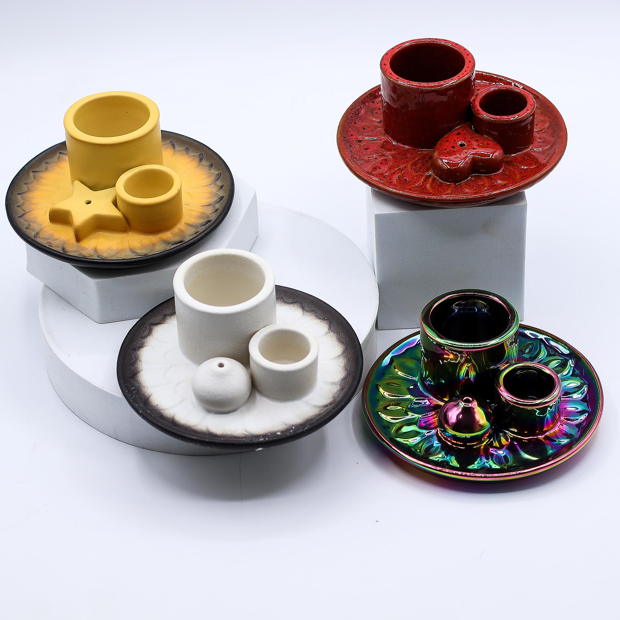 Despite its bold appearance, it’s sturdy and practical — the central holder keeps sticks upright while the dish safely catches ash. Retailers value it for its strong visual impact and year-round appeal, especially in wellness boutiques, esoteric shops, and creative gift stores.