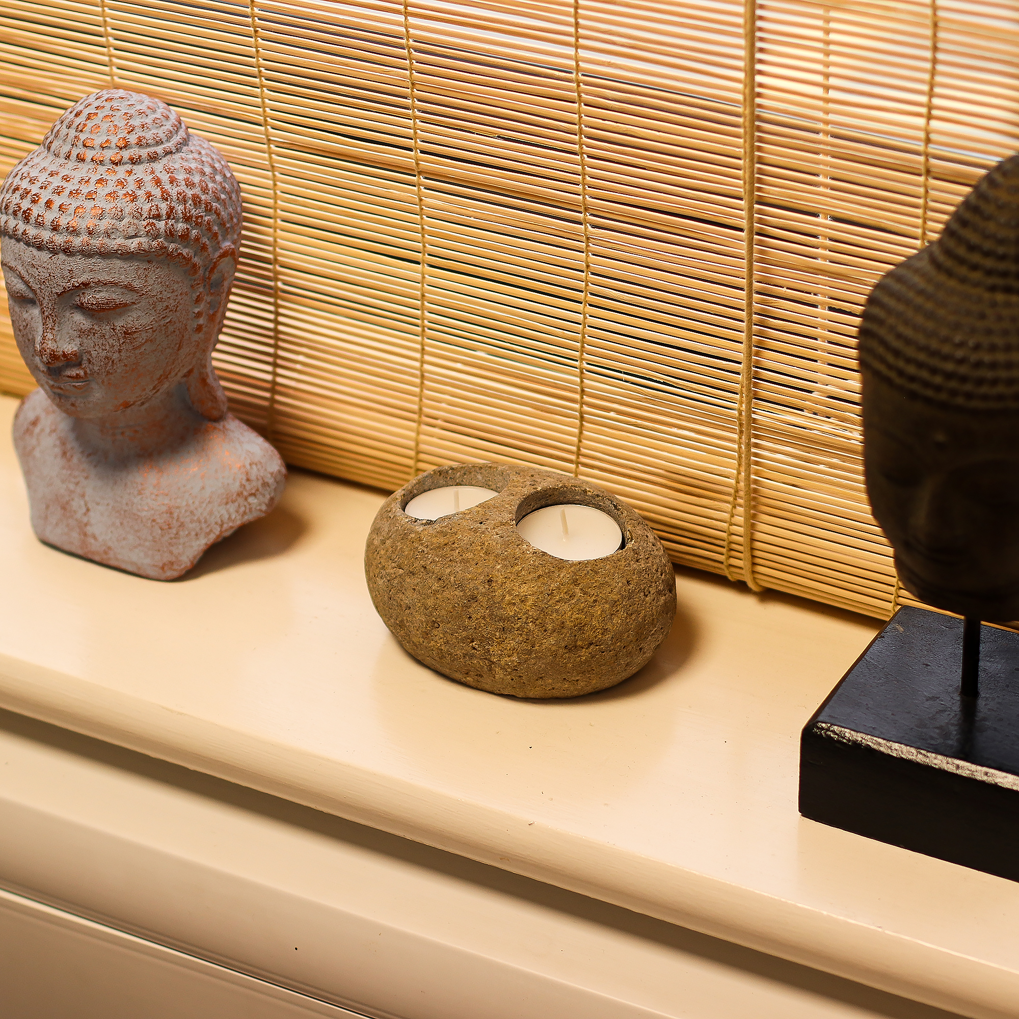 Each piece is one of a kind, showcasing the natural texture and tone of the stone it was carved from. Designed to hold two tea lights, it’s ideal for creating a soft, tranquil atmosphere — perfect for relaxation corners, wellness displays, or nature-inspired gift collections.