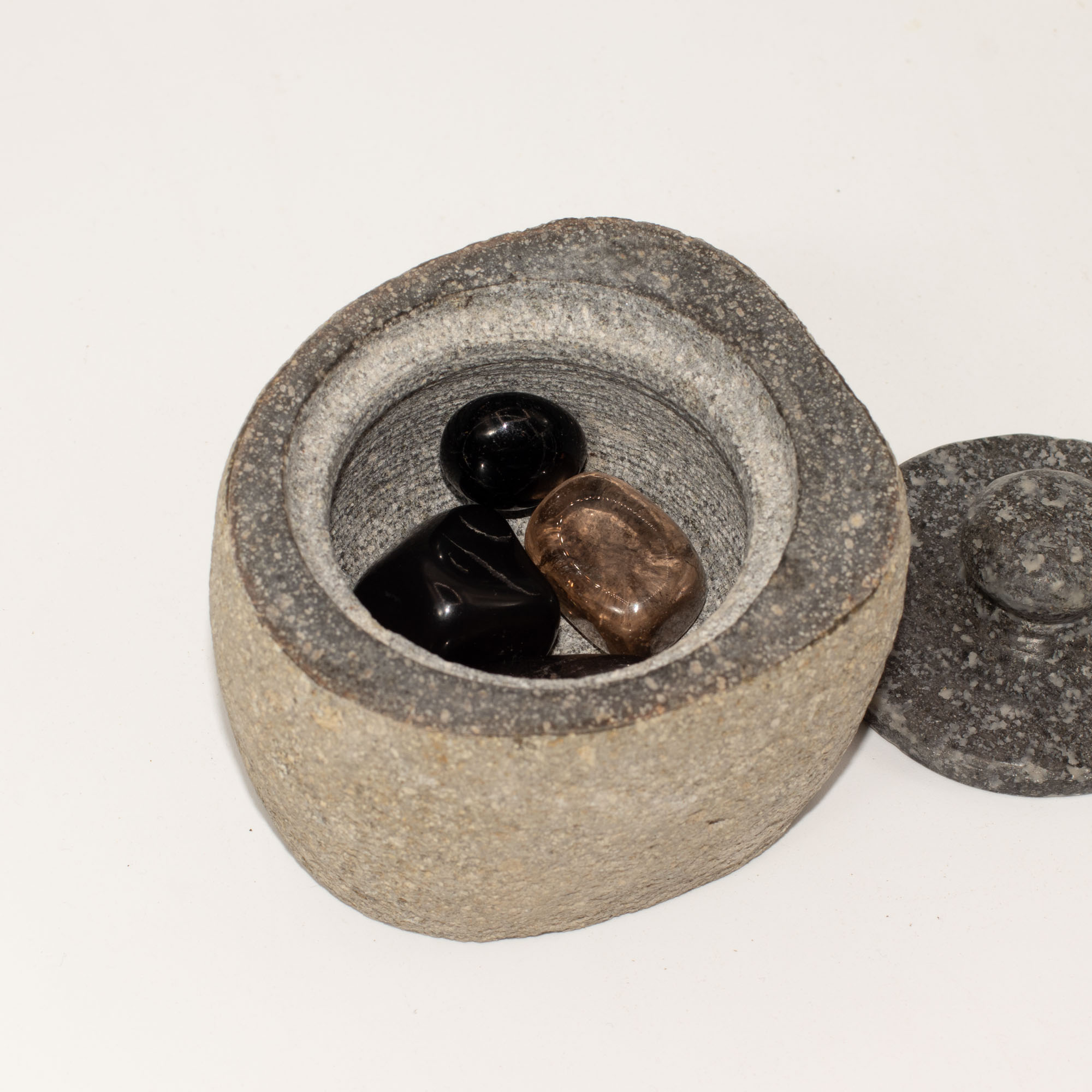 This Small Grounding Pot is carved from solid riverstone, preserving the stone’s natural weight, texture, and organic form. Smooth on the inside and left raw on the outside, it offers a reassuring feel in the hand and a calm, grounded presence on any surface.