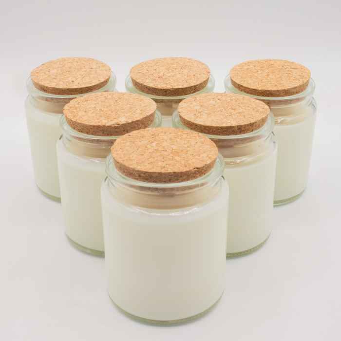 • Clear glass jar with natural cork lid for a clean retail presentation